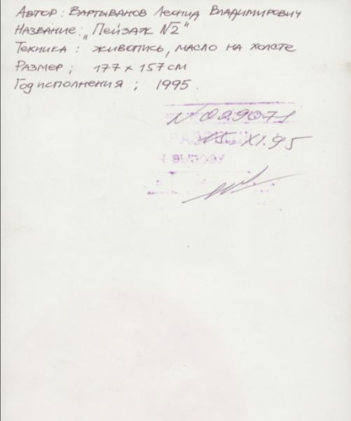 Посилання на об’ект документа: Леонід Вартиванов, 1995, Пейзаж №2, полотно, олія, 177 х 157 см