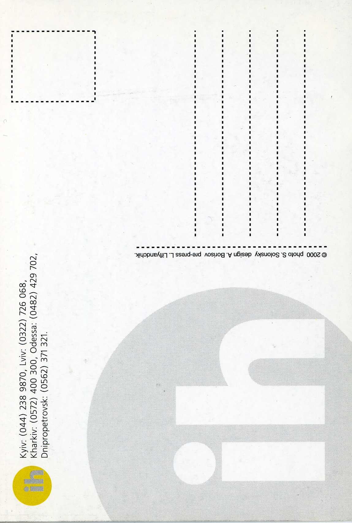 Сергій Солонський, Олексій Борисов, 2000, листівка для мовного центру «International House» (Харків, Україна), друк на картоні, 10 × 15 см