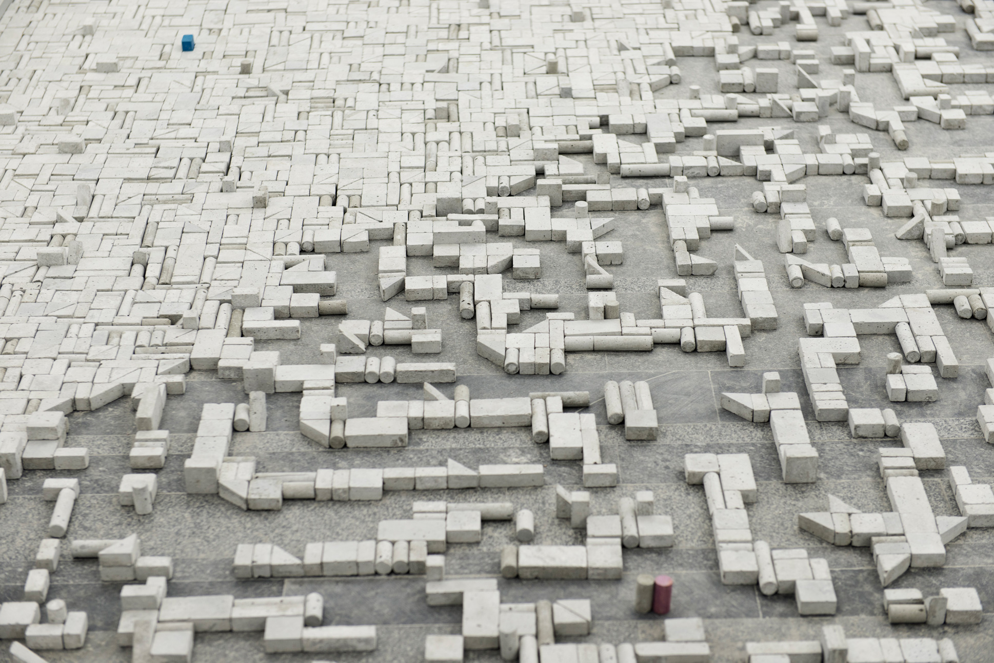 “The jury awards Rayyane Tabet a special prize for his close examination and intelligent articulation of the complex social and historical context of his home in Lebanon. Referencing architectural languages, Tabet succeeds in transforming and communicating an intimate and personal experience to a wider public, by multiplying an original wooden toy set to become a field of 12,000 concrete sculptural copies of its parts, an abstract and urban landscape of models.”