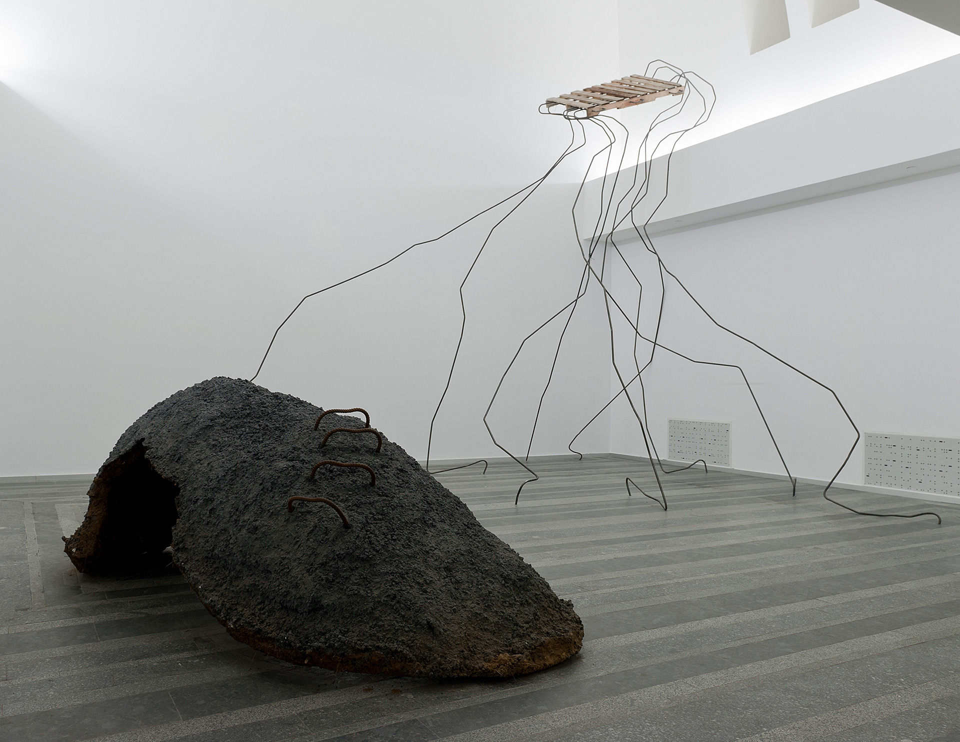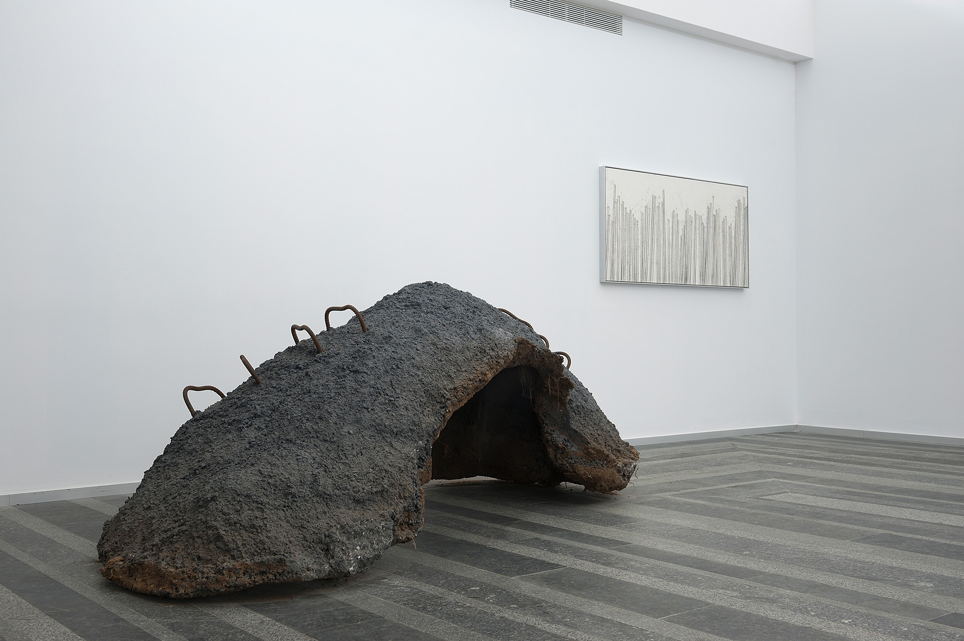 Ruben Ochoa’s monumental sculptural interventions inside the gallery thematize the disruption of space. They entangle the viewer, dealing with the social, political and ecological dimensions of construction and urban development, through the use of rough construction materials such as metal, concrete and wood. Ochoa recontextualizes and deconstructs “ready-made materials” to invent a sculptural language with strong architectural awareness. His work continuously shows an involvement in the tension between natural landscape and built environment.