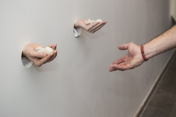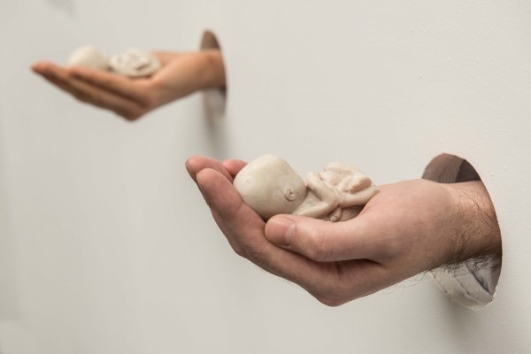 Ilya Chichkan, one of Ukraine’s leading artists, created a performance piece using actors especially for the exhibition. Which will be on show at the PinchukArtCentre every day. This new work consists of two human hands that are each holding a tiny sculpture representing a “deformed” foetus. One is the hand of a woman, a metaphor of motherhood relating to AIDS as a risk for the unborn child, often infected inside the womb. The second hand is that of a man, a metaphor of (failed) protection.