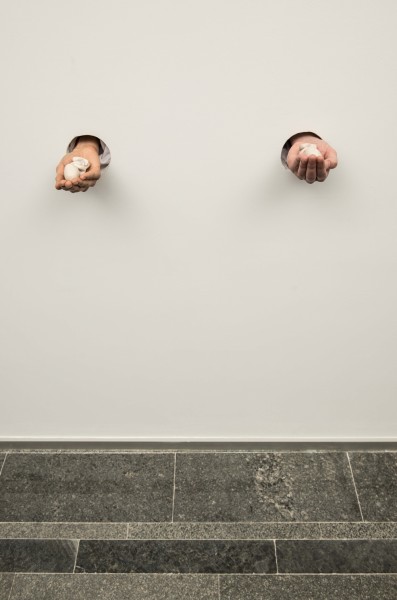 Ilya Chichkan, Cradle, 2013, Two white stone sculptures, performance, Courtesy the artist