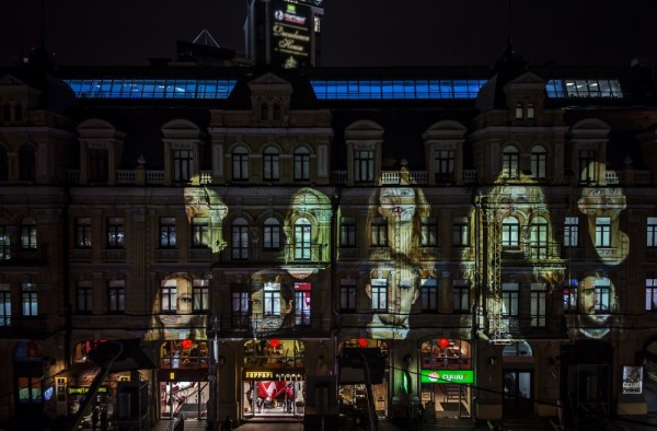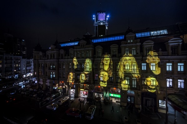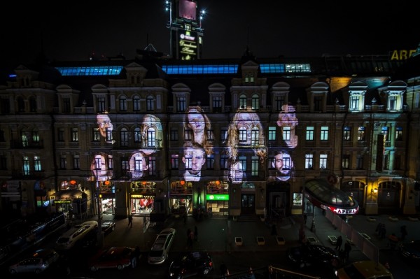 Over three nights, 15 to 17 November, from 17:00 till 24:00, a video installation by Tony Oursler was projected onto the PinchukArtCentre’s façade. The artist transformed the building into a giant projection screen, occupying it with a virtual chorus of faces. Those faces, speaking English, Ukrainian and Russian, played a form of “telephone game”, tracing the passage of language from one person to the next in a long chain.