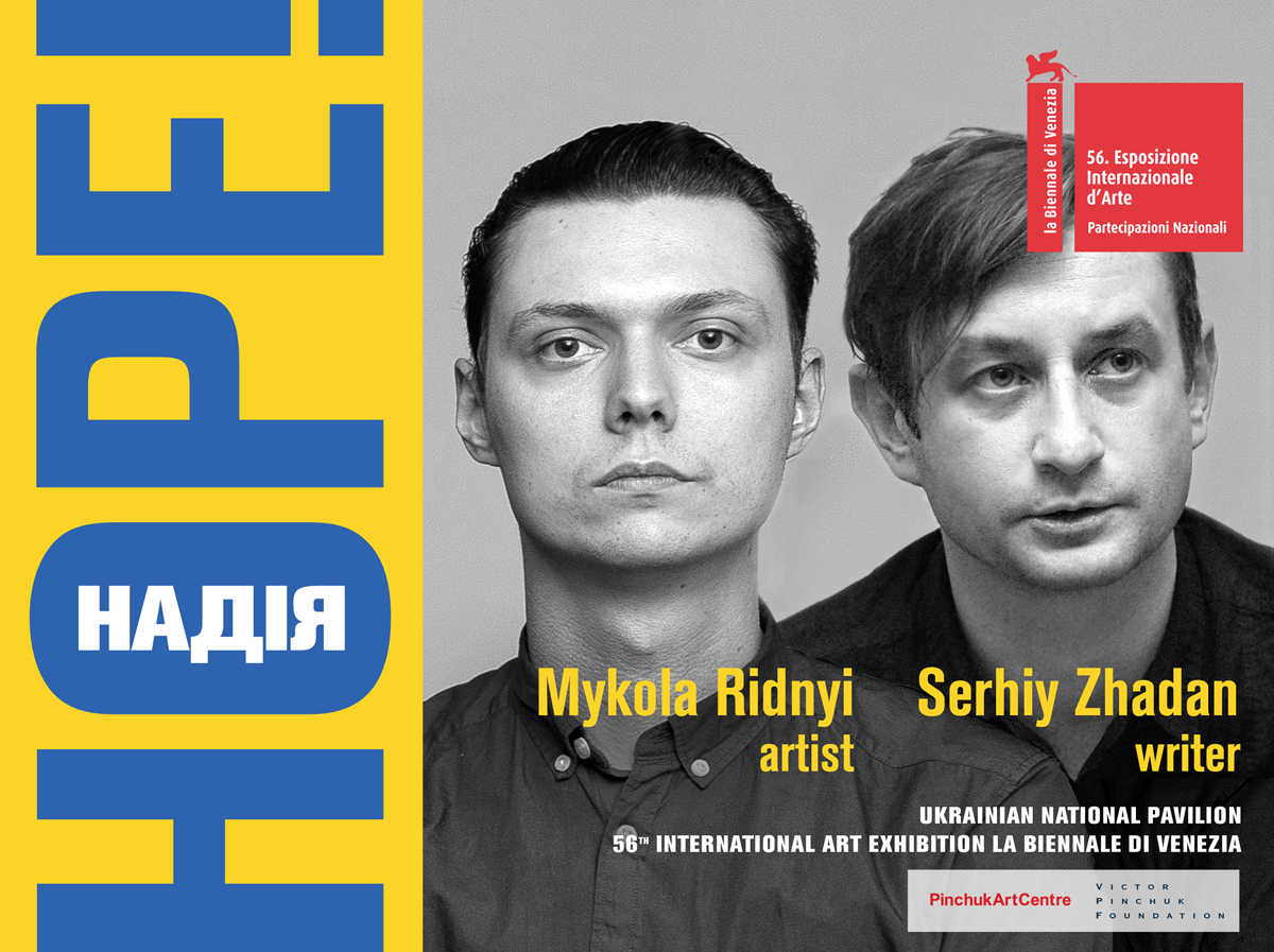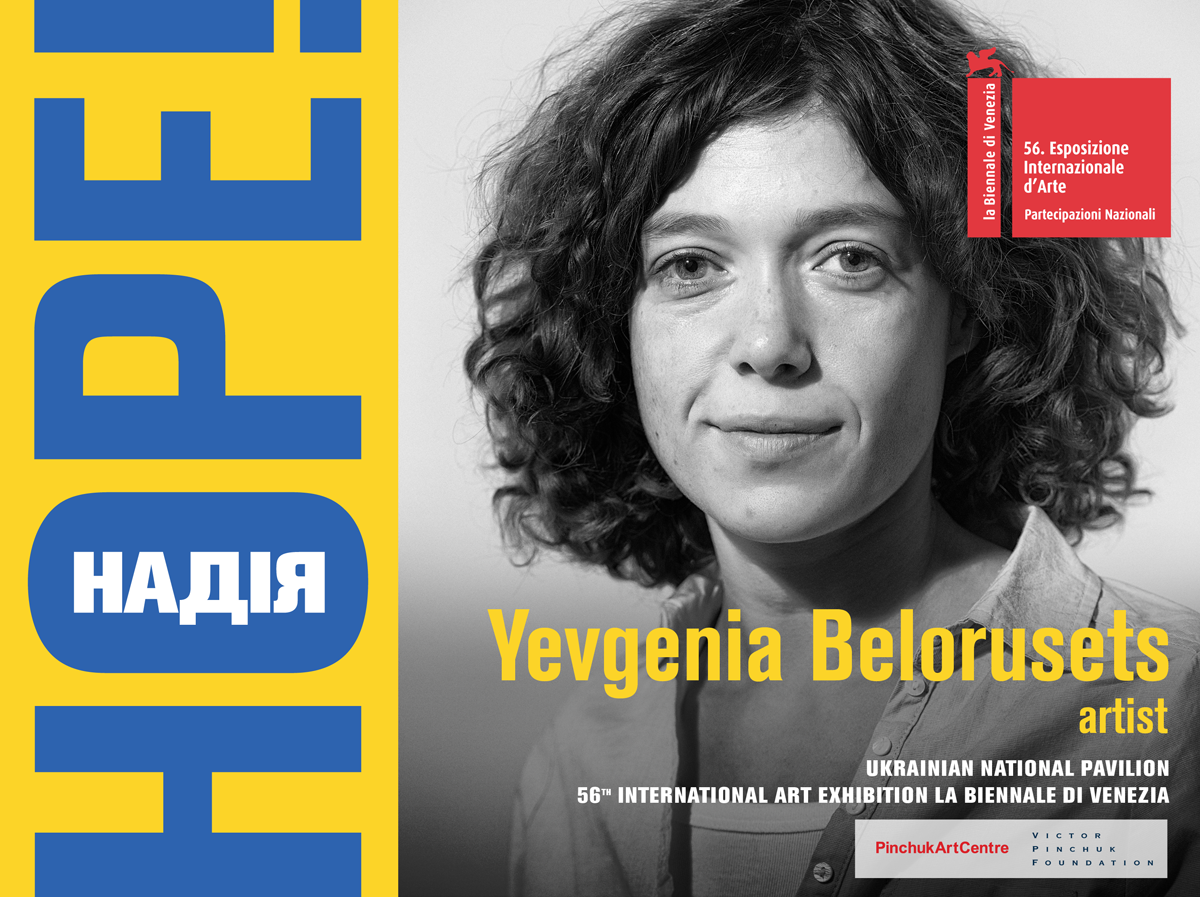 The Ukrainian national pavilion at the 56th International Art Exhibition – la Biennale di Venezia, presents a group exhibition entitled “Hope!” featuring a young generation of Ukrainian artists, including Yevgenia Belorusets, Nikita Kadan, Zhanna Kadyrova, Mykola Ridnyi & SerhiyZhadan, Artem Volokitin, Anna Zvyagintseva and Open Group. The project is organized by the PinchukArtCentre with the support of the Victor Pinchuk Foundation.