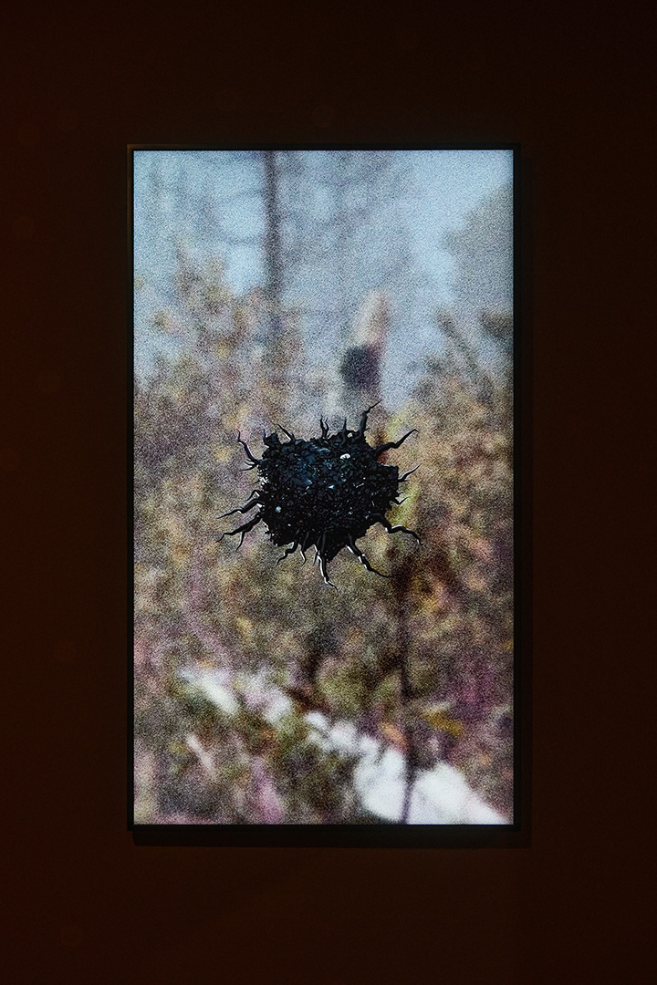 Zhenia Stepanenko’s work centers on the Cladosporium sphaerospermum mushroom species. This black mold grows in damp corners and on rotten food. It also thrives in environments with high levels of radiation, such as the Chornobyl Nuclear Power Plant reactor. In her video, Stepanenko reveals how this fungus was utilized following the next nuclear disaster, the specifics of which remain unknown.