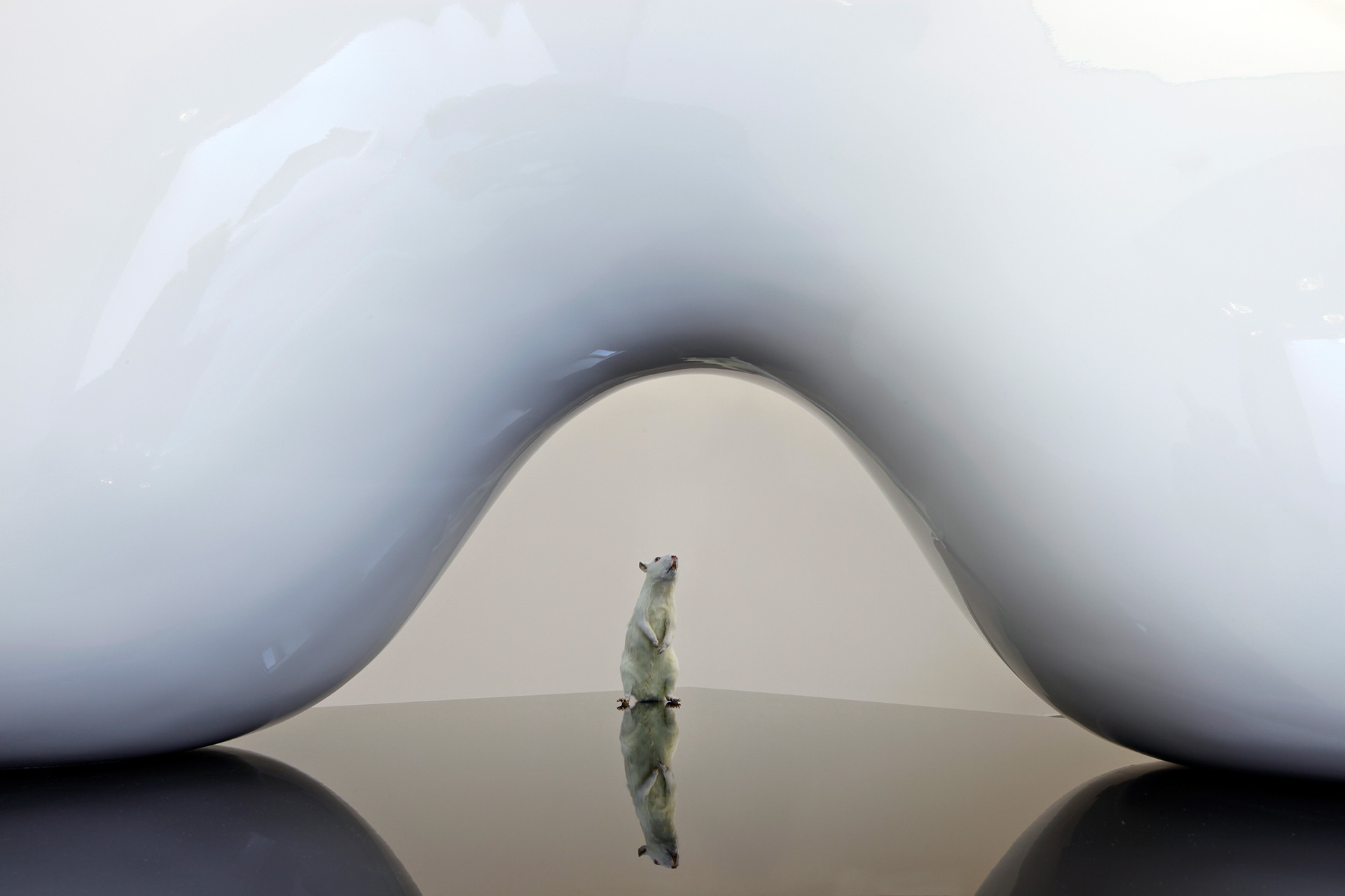 Jeff Koons takes a key role in the exhibition with a comprehensive presentation of works from the last twenty years. Spread over three different floors of the PAC building, they form the backbone of the exhibition. A total of ten key works, six sculptures and four paintings from the series Made in Heaven, Celebration, Popeye, Hulk Elvis are on display. Highlights of this selection are the early icon Rabbit, the sculptures Cracked Egg and Blue Diamond from the Celebration series and the world premiere of the first version of Balloon Rabbit, an astonishing new creation, surely becoming an icon like his key early work. Koons’ contribution thus acts like a mini-retrospective on the theme that forms the core of his whole oeuvre, namely, the ambivalent relationship between sexuality and transcendence.