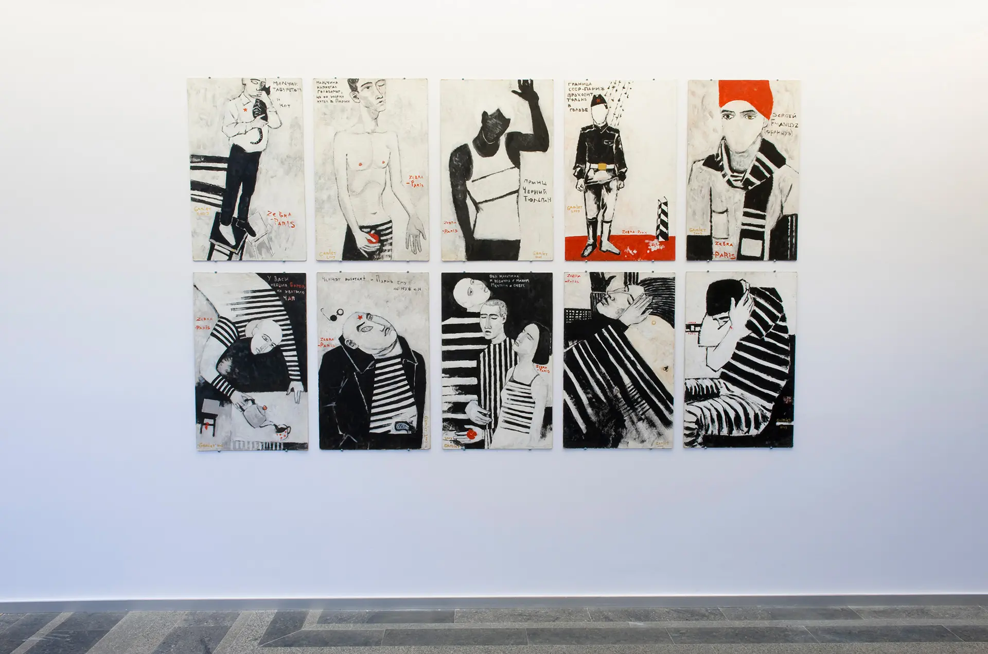 The exhibition featured works by young artists including: Myroslav Vayda, Artem Volokitin, Andrii Galashyn, Hamlet Zinkovskyi, Mykyta Kadan, Zhanna Kadyrova, Mayya Kolesnik, Volodymyr Kuznetsov, Lada Nakonechna, Oksana Protsenko, Oleksii Saj, Oleksii Salmanov, Olesia Khomenko, Oleksii Khoroshko, Ivan Chubukov, Masha Shubina and also BLUEMOLOKO, Hat, SOSka and SYN groups.