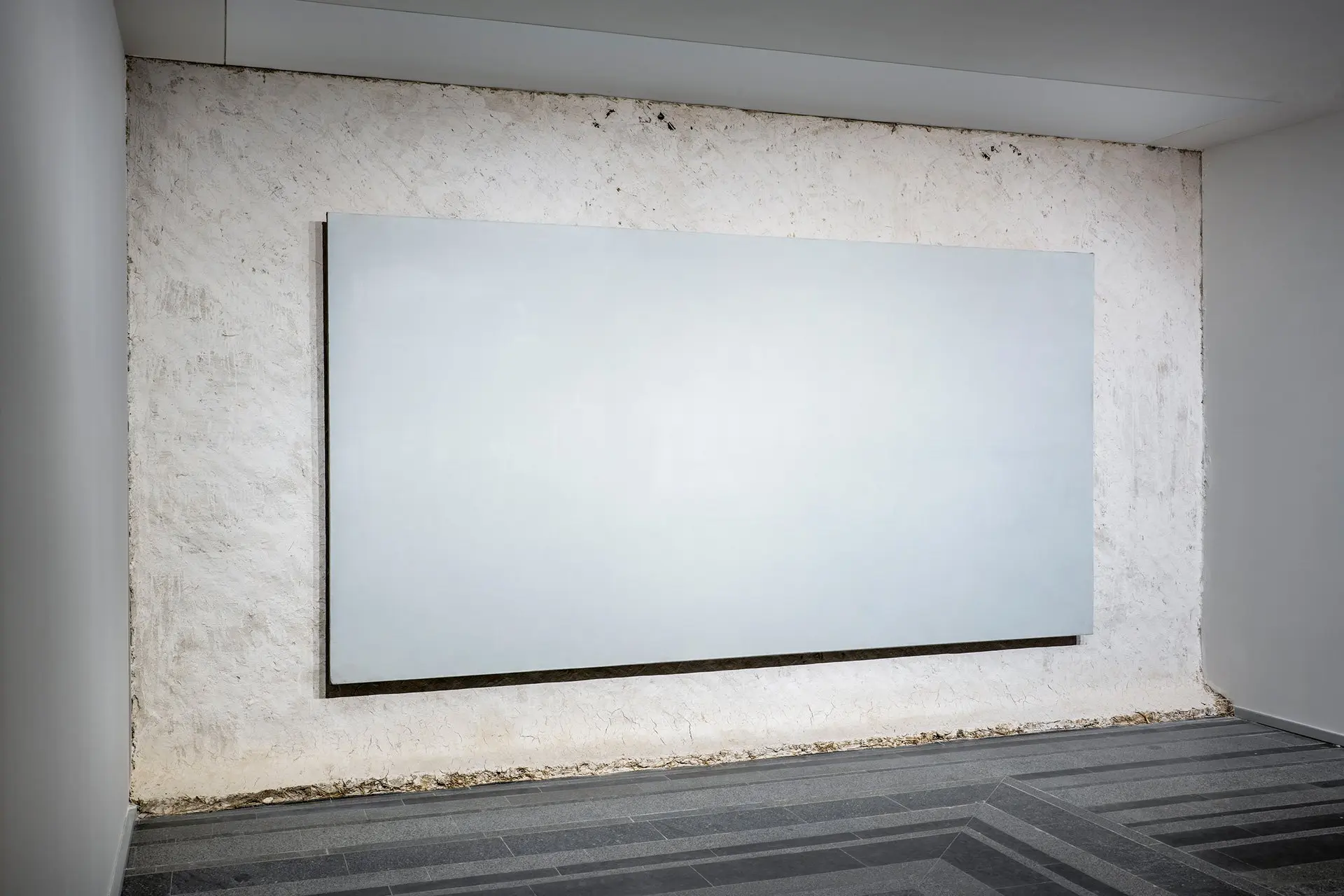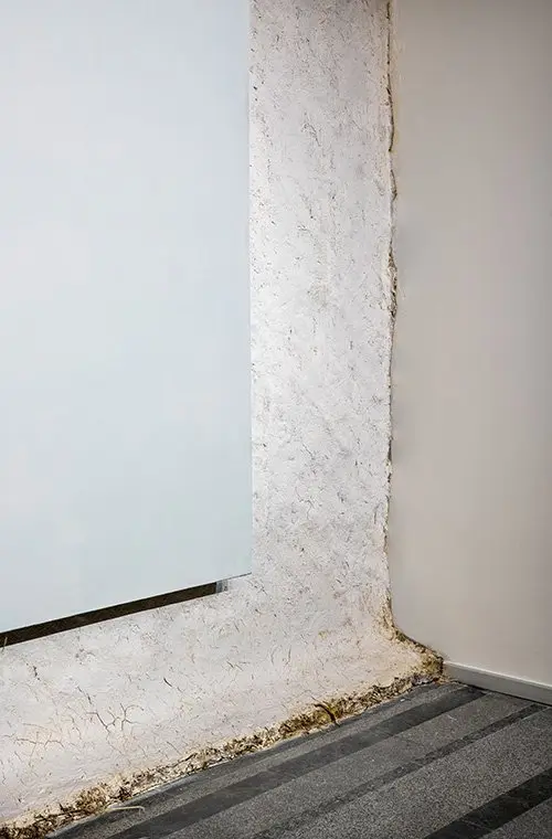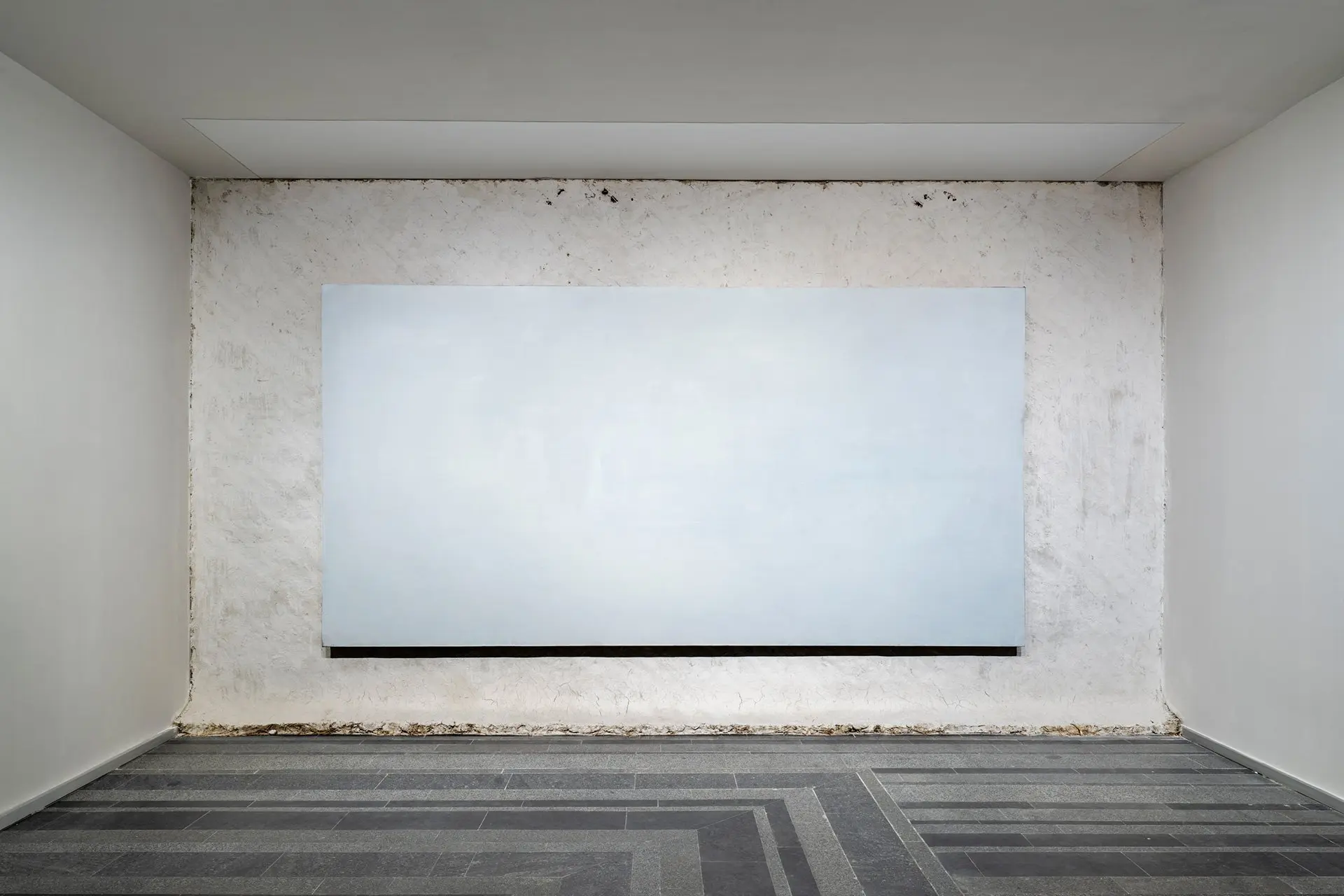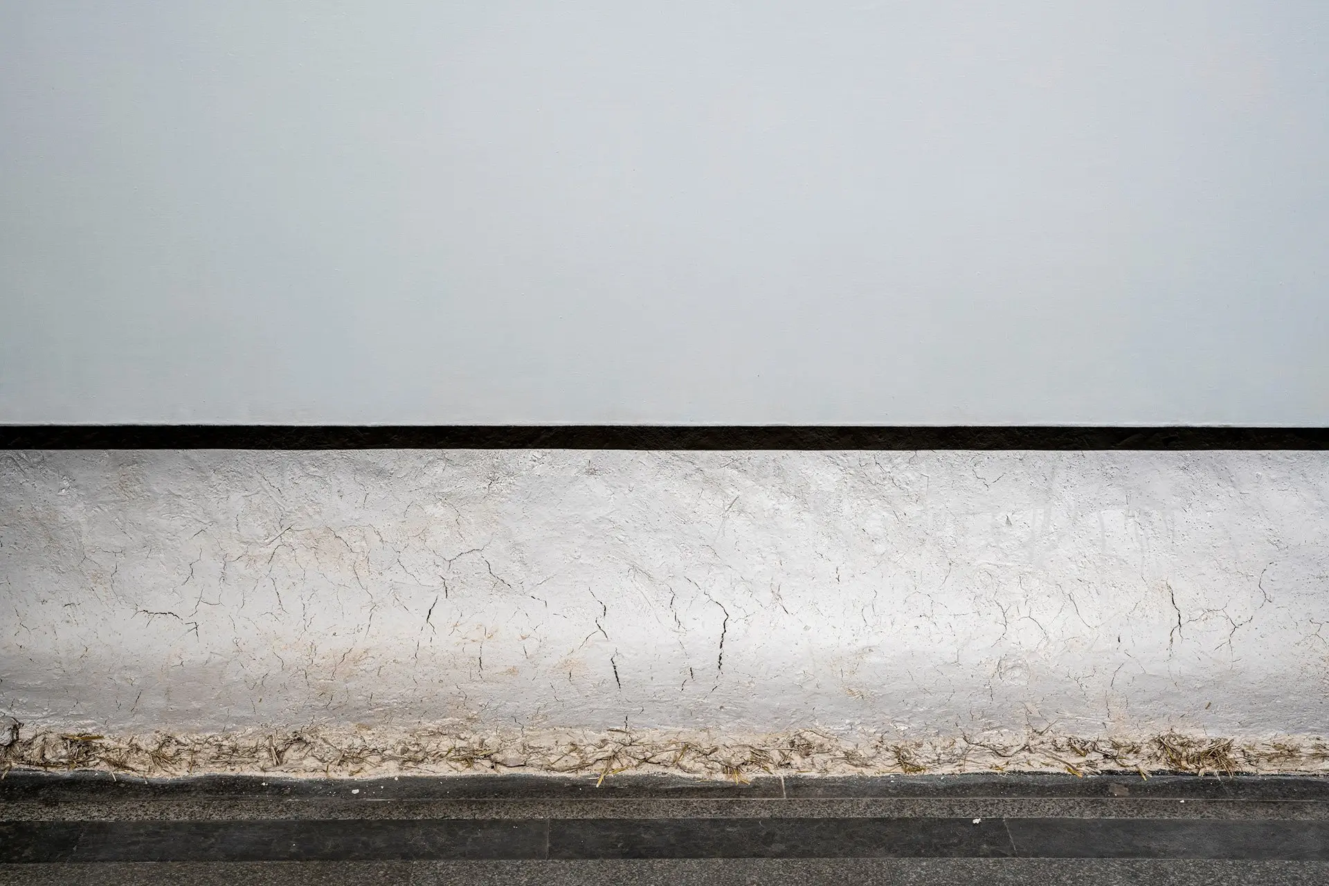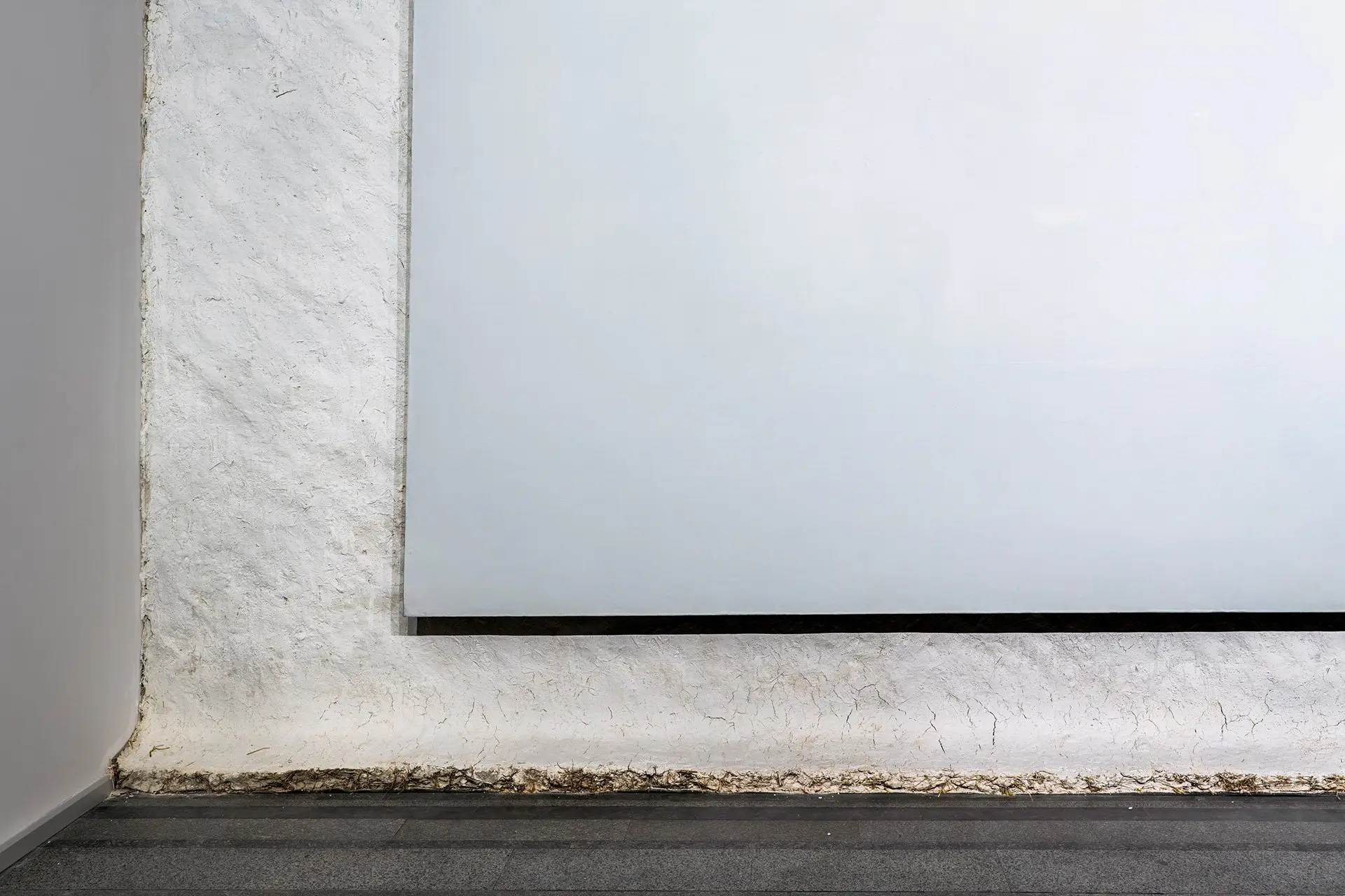 In Anton Saenko’s work Mud Hut, an abstract painting seems to emerge from the surface of the wall, resembling a mazanka clay hut. Thus, a picture that portrays nothing combines with a dense texture that references a very specific image of traditional Ukrainian housing, saturated with various connotations. In this way, the artist reveals the ‘principle of the abstract’: any non-figurative image has a specific, primary foundation, a material source. But art transforms it, and creates a part of reality that escapes interpretations, symbolic meanings, and functions. Color, texture, and light come to the forefront. The outlines of the viewers and the process of contemplation itself appear against the intense white backdrop.