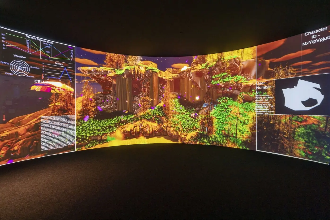 In the Decentraland project, Oleksandr Sirous creates digital terraria by collecting data from visitors in Kyiv, Frankfurt am Main, Seoul, Antwerp and other cities. This artwork uses an MMORPG engine and converts the collected data into biomes, aiming to represent them in organic form. Each type of data corresponds to a particular type of living things, such as bugs, mushrooms or plants. Each location where the data are collected has its own type of digital environment that mirrors the natural environment typical for the climate zone of the area. This way, the visitors share the authorship and get immersed in the project: by allowing the artist to use their personal data, they become directly involved in the creation of the environment of a new utopian digital world of universal interaction.