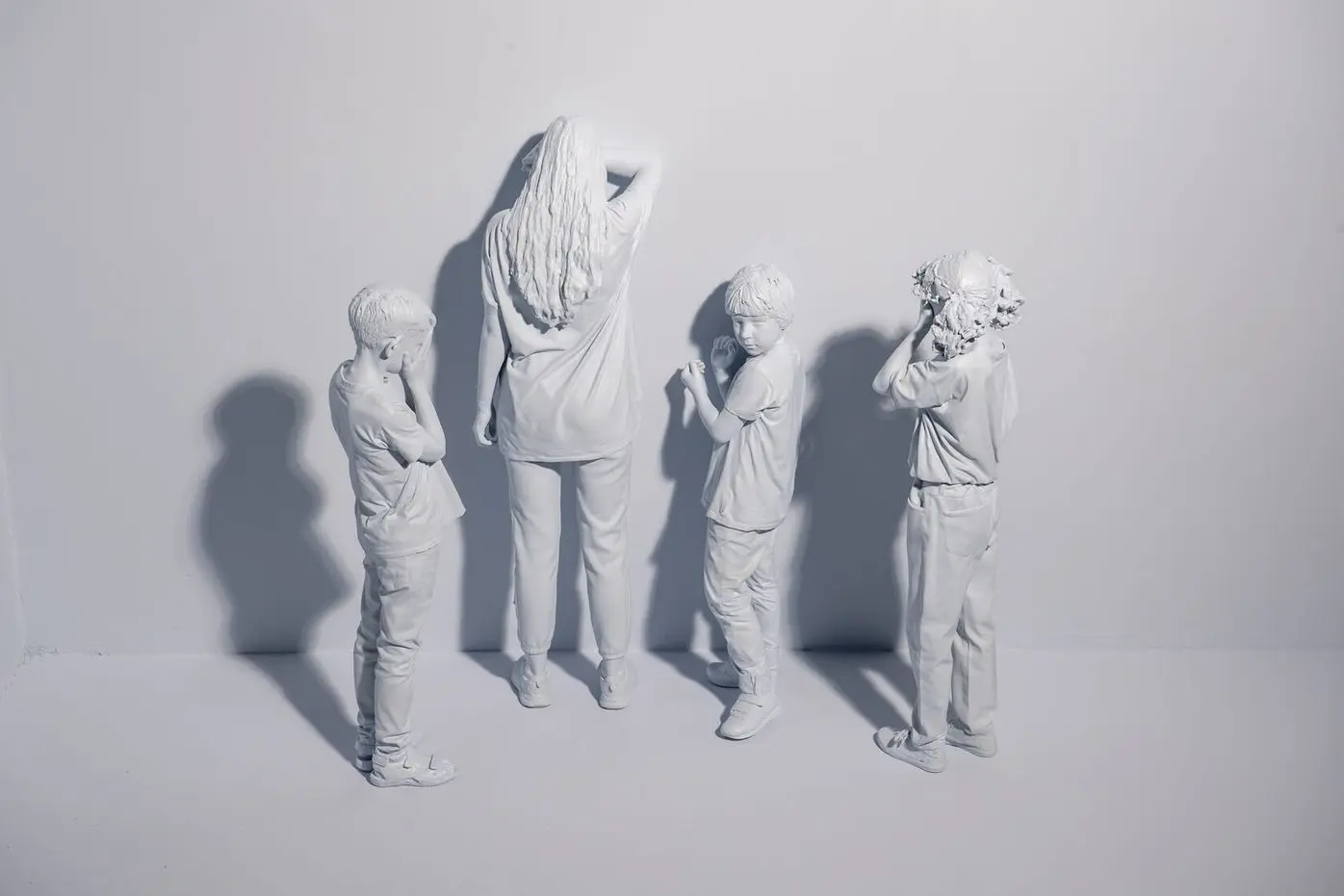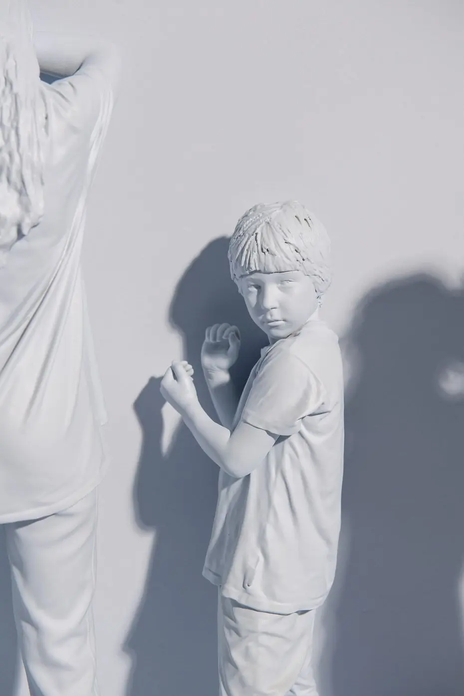 Nikitina creates her photopolymer sculptures by 3D scanning and printing. Her artistic practice includes making 3D reportages, documenting and archiving certain current events to make objects that could become social documents in the future. Instead of capturing popular public figures, the artist focuses on new personalities, new actors of our reality, such as soldiers in rehabilitation or, like in this case, kids. The whole idea behind her sculptures is not to glorify a hero, but rather to thank her chosen muses for giving hope and inspiring others to hold on and keep believing in the best even in the darkest times.