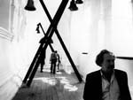 Perhaps Kounellis consideration of himself as a painter has lent to his rendering a seemingly weightless work. The artist has expressed the divine without referring to a traditional language and succeeds in enhancing an ideal, as similar to Malevich. Viewing himself a partisan of Malevich, Kounellis makes a clear distinction between popular and mass culture, referring to that which is logical to societys history and rituals, merging rather than alienating tradition. His aesthetic dissent and uniqueness consents to the mystical and ethical rules. A bell, devoid of function, is transported from the location of its interim storage within a castles bell tower in Western Ukraine, only to be replaced in an arcade historically the exhibition place for religious art, re-instated as objects with potential function, but nevertheless, reduced to form only. Religion more than political separation distinguishes East from West, and Kounellis recognizes the rights of cultural separation rather than nomadism.