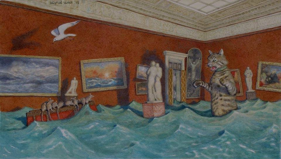 Вот и на этот раз, попав на выставку «Перископ» Ильи Исупова, зритель оказывается лишь героем тревожного сна адмирала, который кого-то предал, а, может, предал предателя и стал героем. Вы слышите плеск волн – не из динамика, видите розовые корабли – не на экране, читаете истории – не в книге, спотыкаетесь о тело – бестелесное. Все реально и все лишь интерпретация реальности, которую очень тяжело принимать такой, какой она есть. Для этого художник Илья Исупов пишет свою реальность – пугающую и пленительную, полную смыслов и загадок.