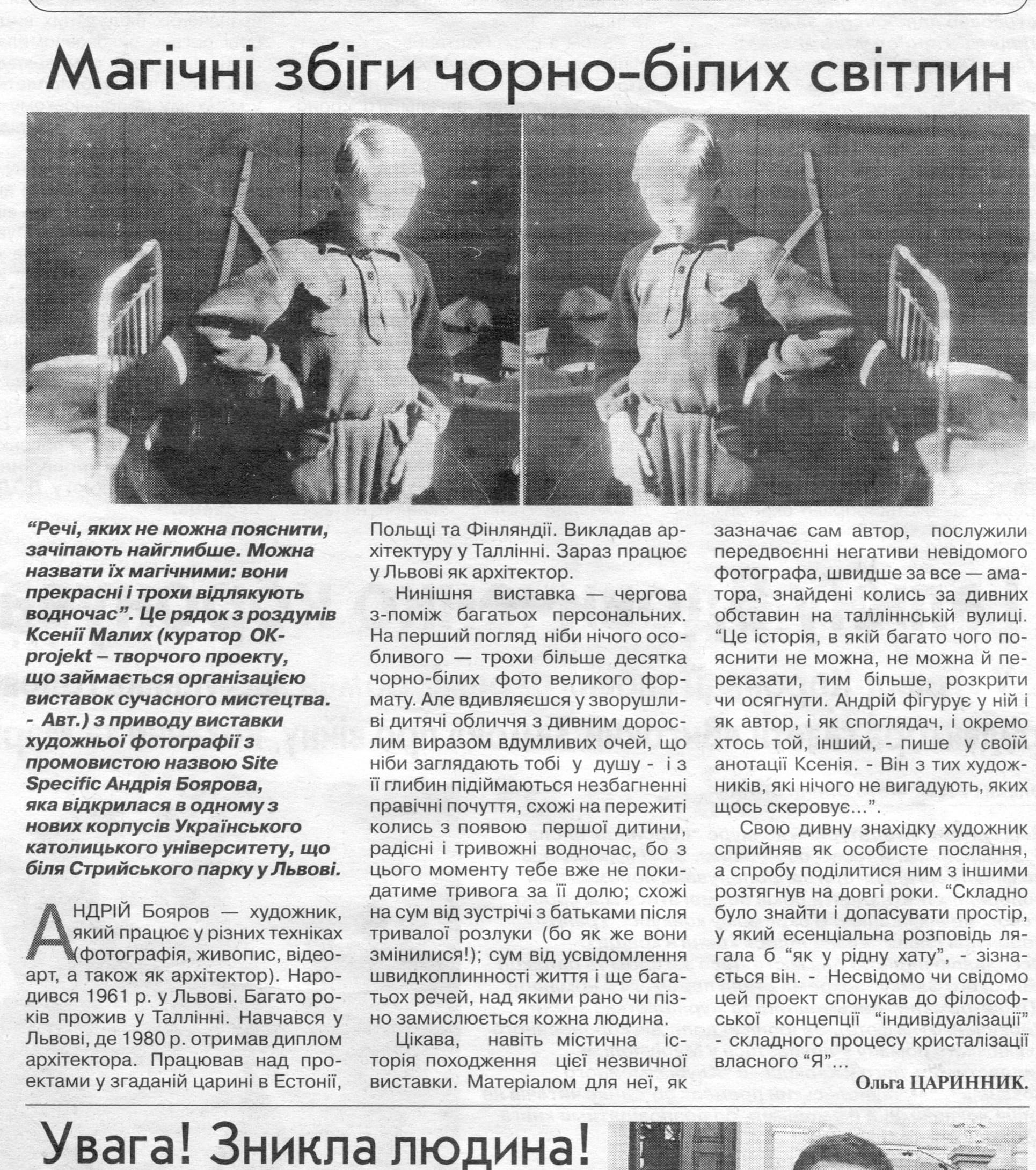 “Цю знахідку [негативи] я завжди сприймав як особисте послання, а спробу поділитися ним з іншими розтягнув на довгі роки як work in progress, – розповідає Андрій Бояров, – важко було знайти і допасувати простір у якому есенціальна розповідь лягала б “як у рідну хату”.