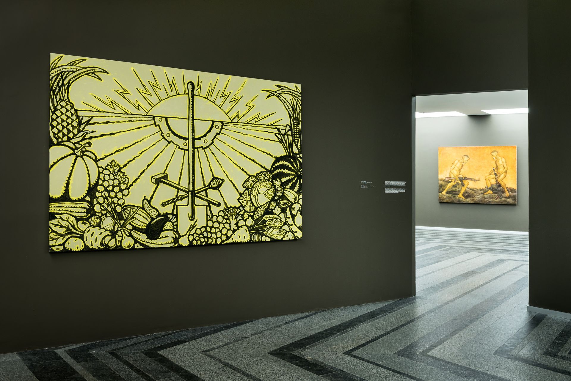 Виставка «Батьківщина в огні» пропонує один із поглядів на історію українського суспільства 1990-х років, розказану крізь призму обраних творів із колекції PinchukArtCentre. Назва виставки «Батьківщина в огні» є алюзією на кіноповість Олександра Довженка «Україна в огні», в якій оповідається про кровопролиття, що відбувалися на території України у ході Другої світової війни. Однак, представлені на виставці твори, жодним чином не пов’язані з воєнними діями та реальною лінією фронту.