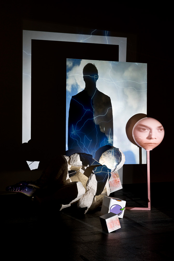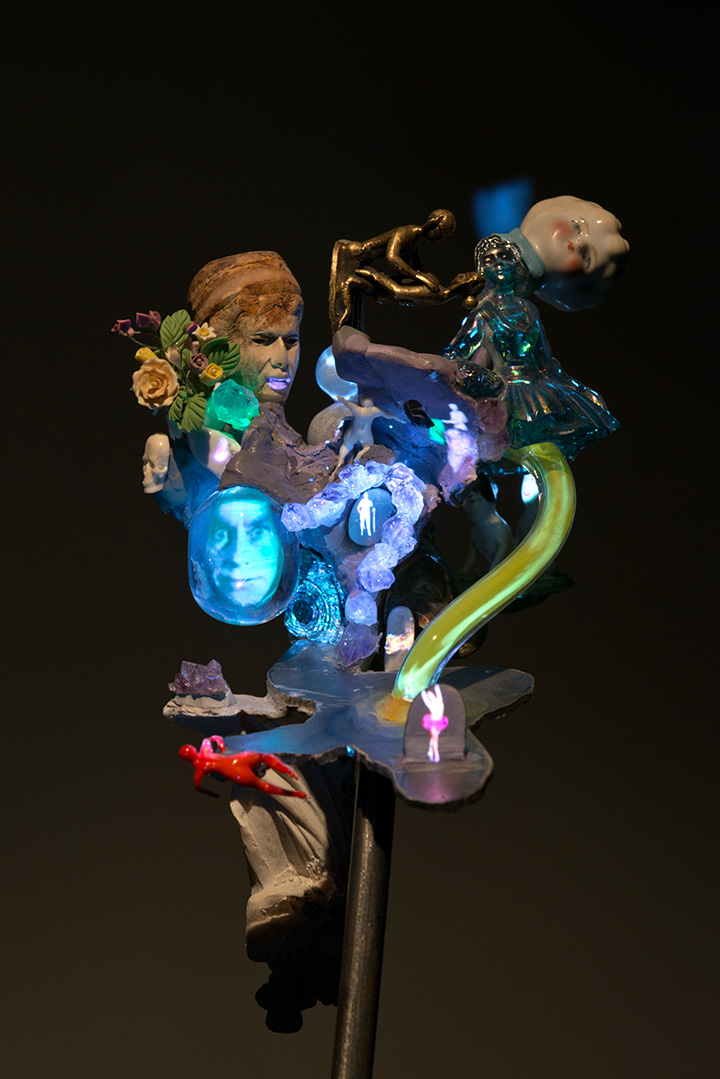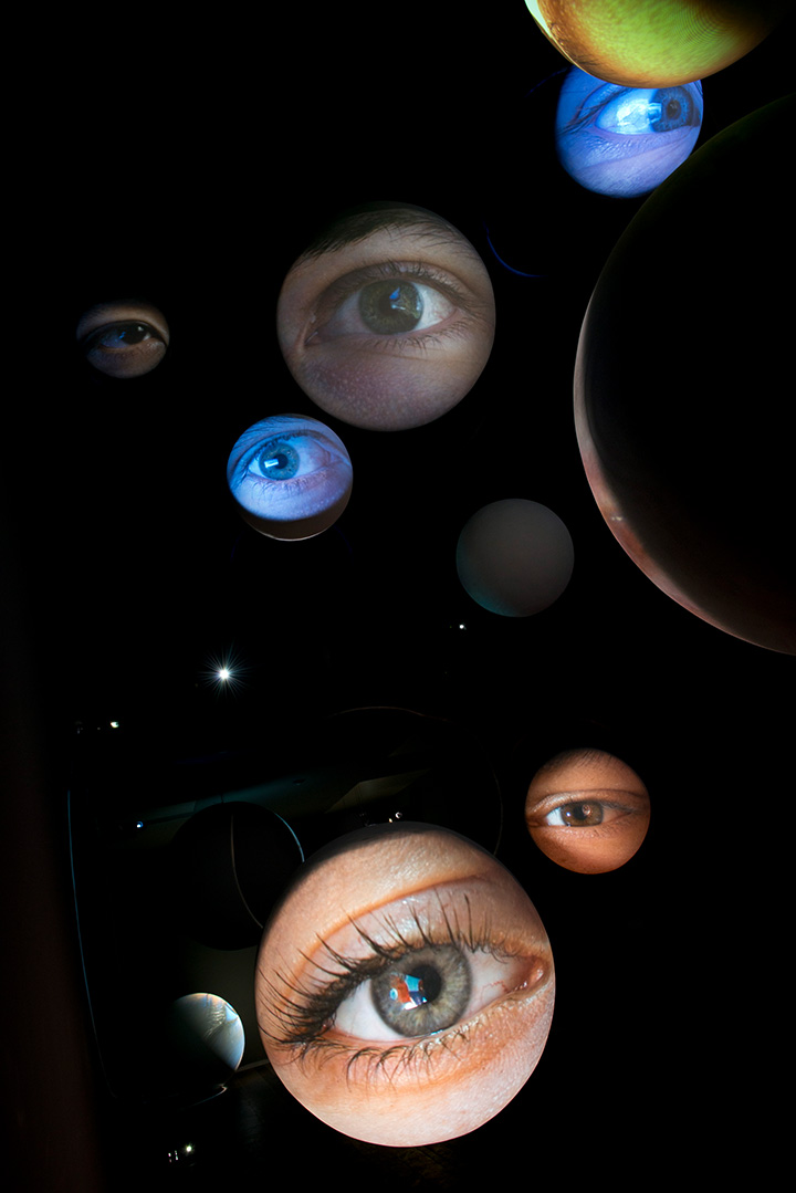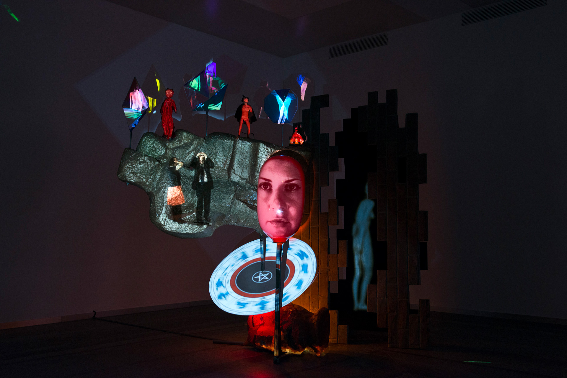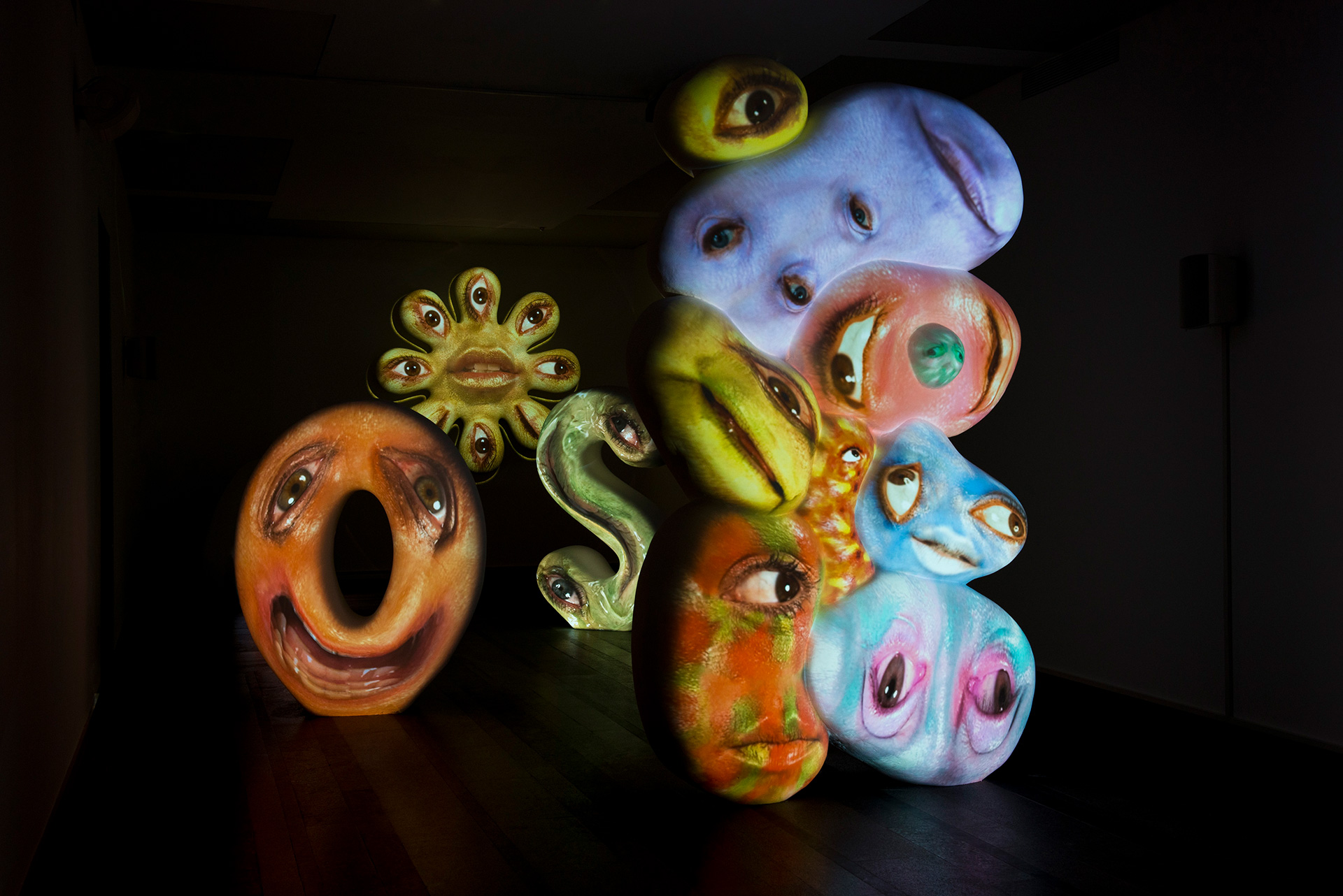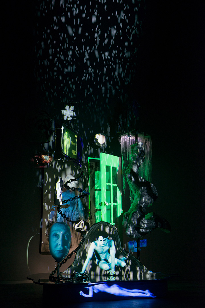 З іншого боку, велетенські розміри інсталяції «Замок» (2011) майже силоміць занурюють глядачів у глибоке фізичне переживання, створюване звуком і зображеннями. Над відвідувачами височіють три велетенські фігури, з яких і складається композиція. Проходячи чарівним спроектованим світом, люди проживають три етапи, представлені персонажами, які створюють замкнену структуру: перший є волею та діяльністю; другий – це статус-кво та людські помилки; третій – математична симетрія та смерть. Ця монументальна інсталяція включає постановки художника і режисера Тоні Конрада, вокал співака/перформера Шанік Роджерз та звук, створений у співпраці з Деном Ллойдом, професором філософії Коледжу Трініті, Хартфорд. Також робота містить музичні композиції, зґенеровані на основі функціональної магнітно-резонансної томографії учасників психологічних тестів. Інсталяція виглядає як прихована система, що знайома кожному й нечітко розмежована у свідомості, тілі й середовищі – й у ній синхронізовані зображення змінюють одне одно, створюючи повноколірну гру.