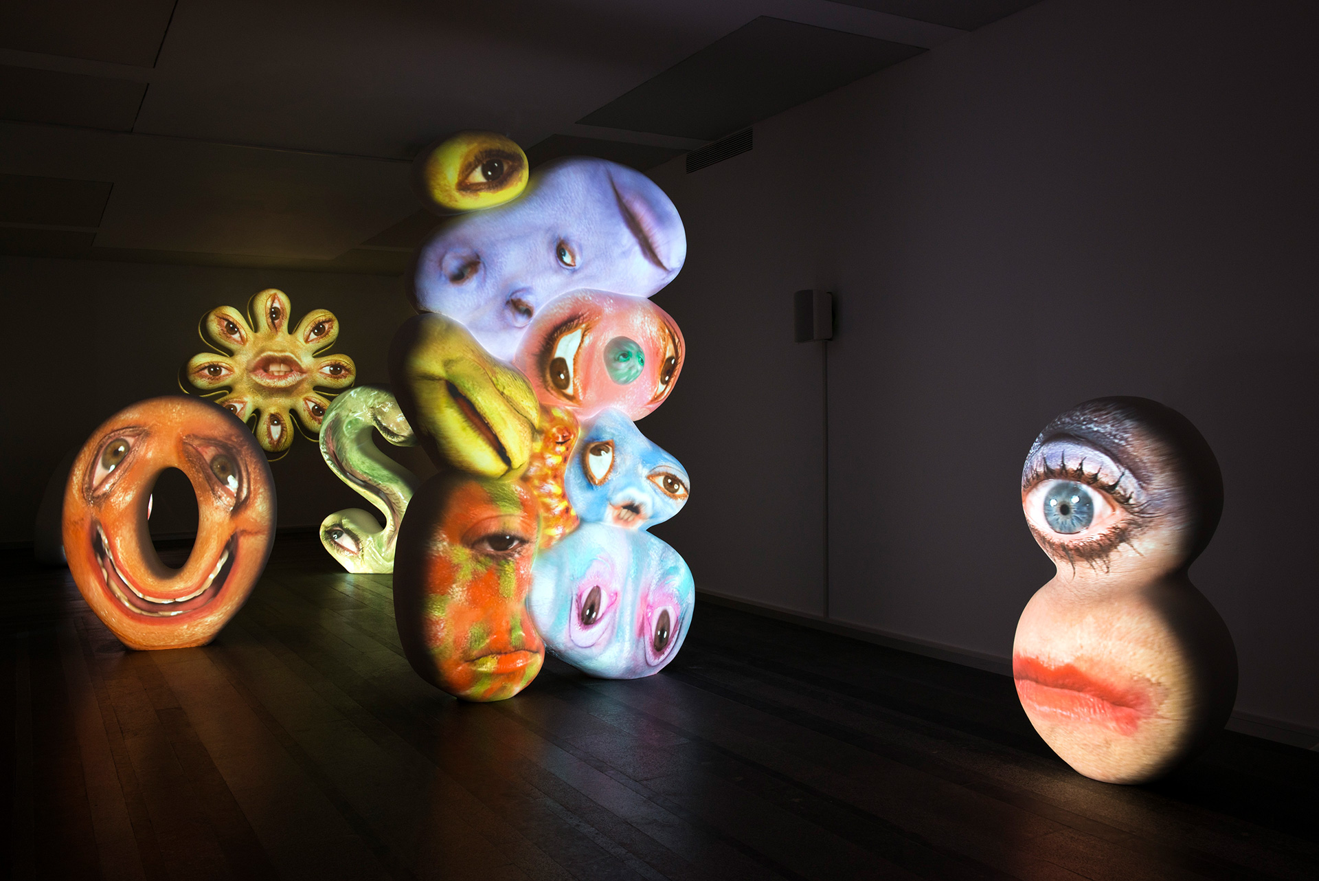 Людському обличчю надається центральне місце у циклі робіт «Карикатури» (з 2002), у яких антропоморфні скульптурні об’єкти набувають карикатурних форм і буквально оживають за допомогою зафільмованих на відео очей і ротів, проектованих поверх об’єктів з неприродними пропорціями. Перфоманси, які супроводжують цей цикл, включають окремі доробки довготривалої співпраці з Трейсі Лейпольд та Констанс де Йонг. Ці роботи досліджують емоційне ставлення глядача, а також відображають еволюцію карикатури – від ранніх скульптурних об’єктів, таких як «Вілендорфська Венера», і до відомого усім смайлика.