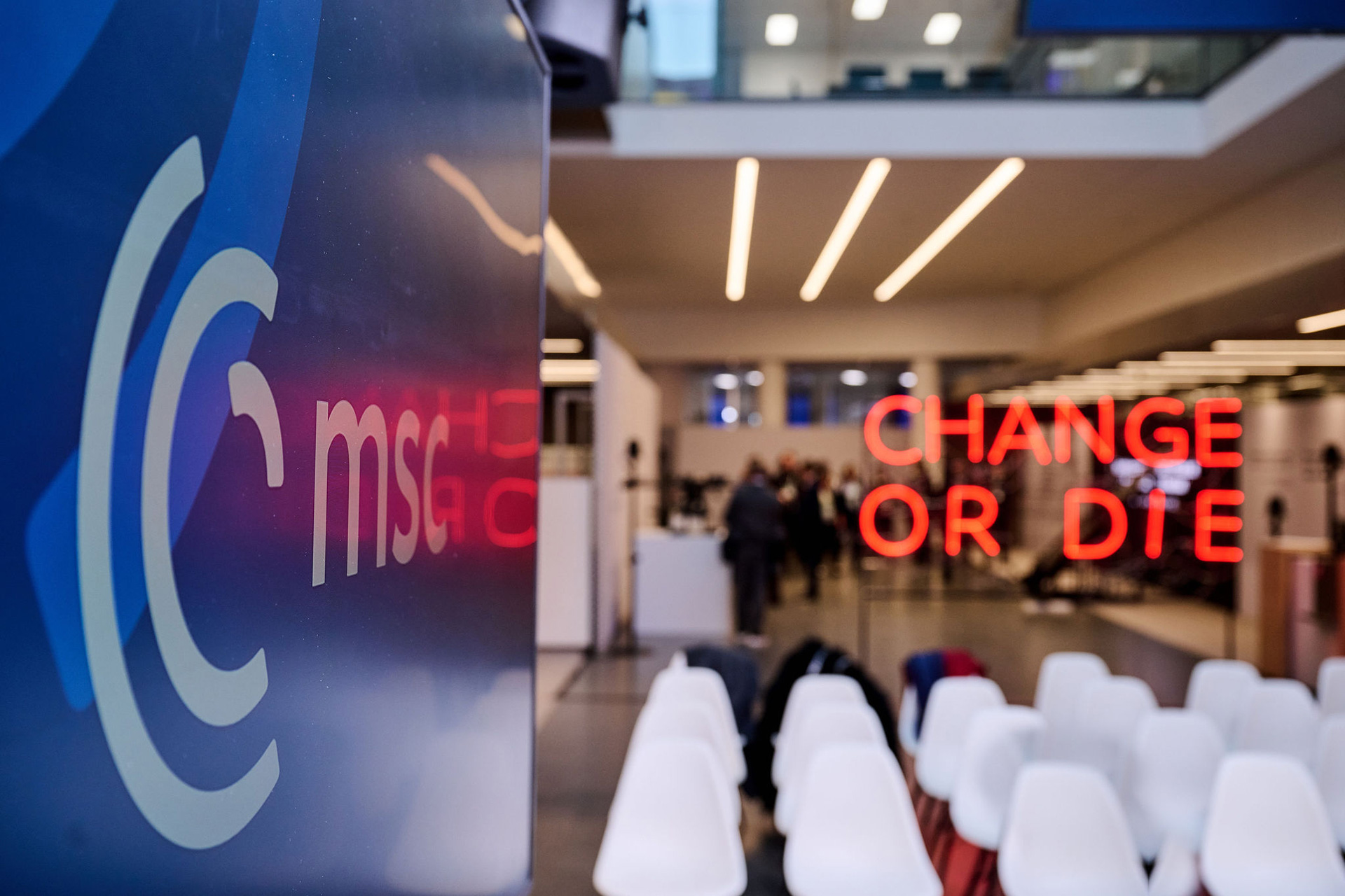 Заклик до пробудження для Європи та Заходу, втілений у яскравих неонових літерах: “Change or Die”.