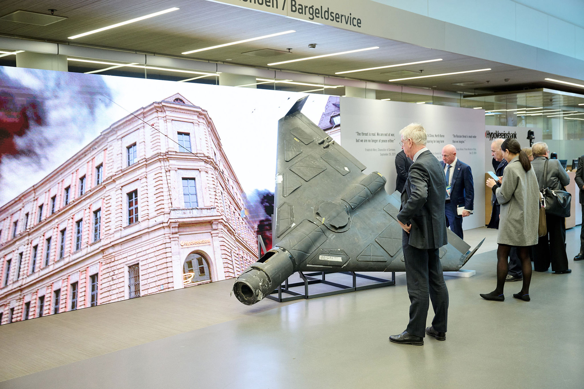 «Одне з найпотужніших послань – це те, яке український художник Олексій Сай створив для цієї виставки: «Змінюйся або помри». Інше послання я б сформулював так: Для нас дуже важливо мати «Український дім» у Німеччині, але нам в Україні також потрібні німецькі ракети Taurus, нам в Україні також потрібно більше американських систем ППО Patriot, і нам потрібно більше інвестицій у нашу оборонну промисловість», – додав він.