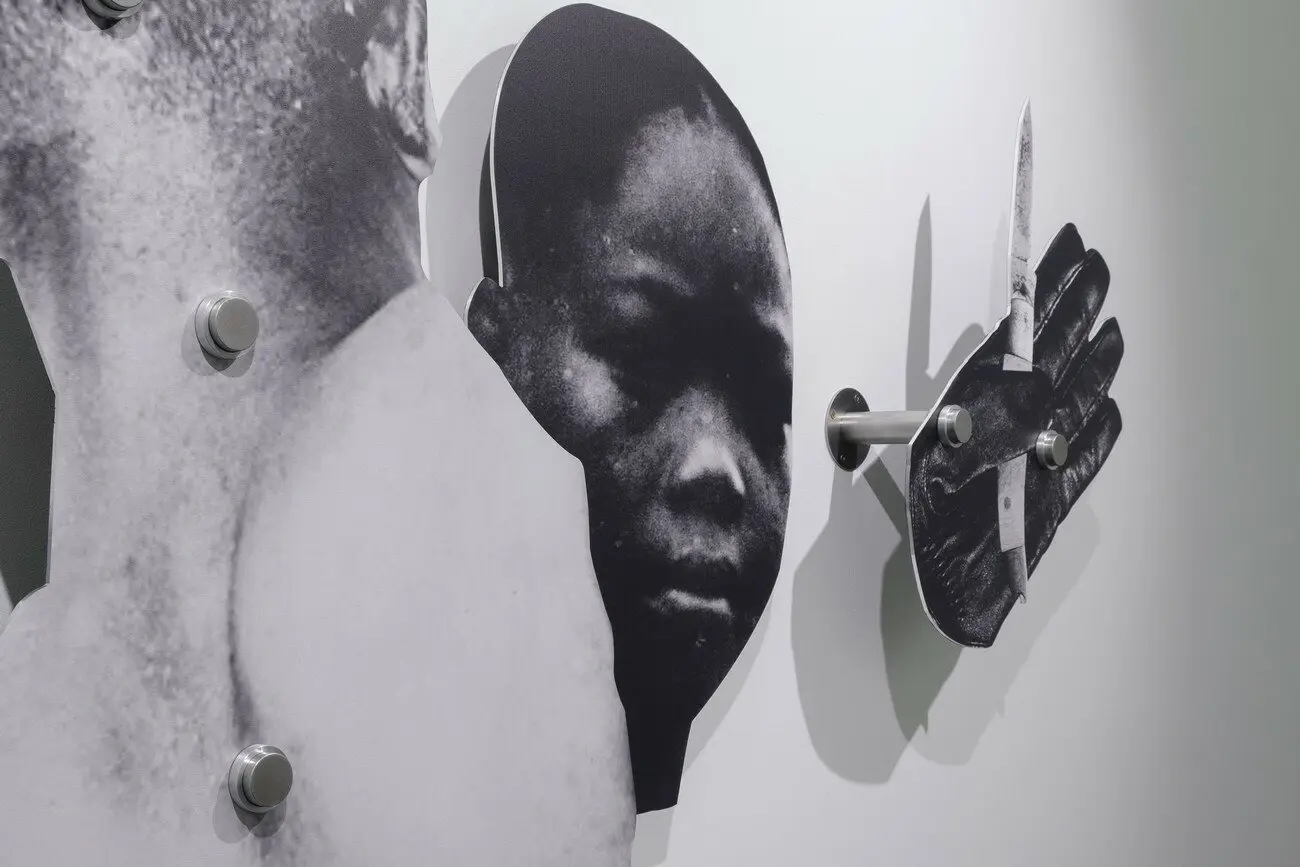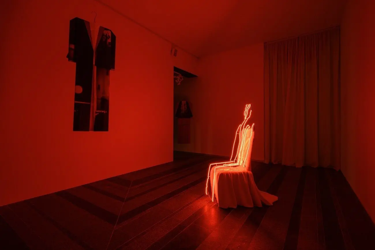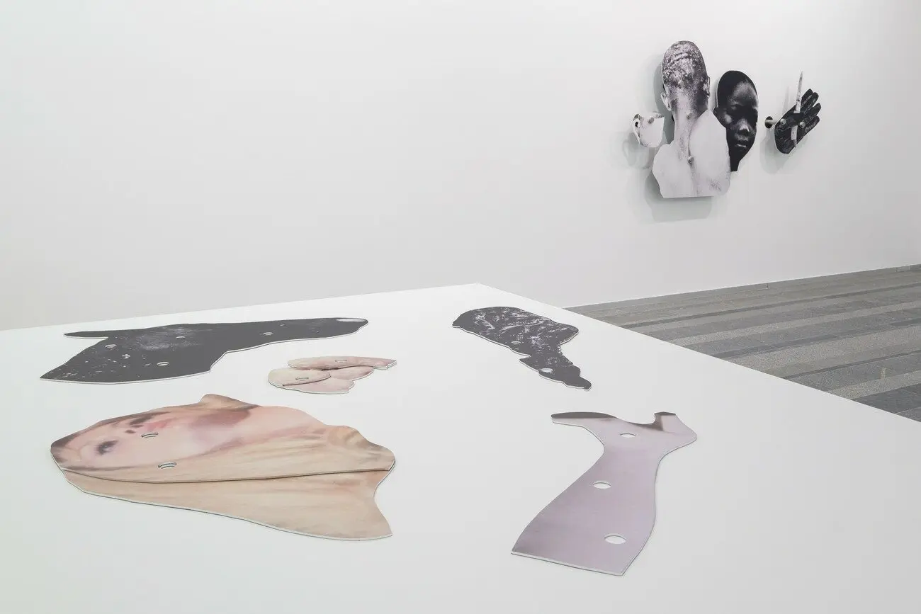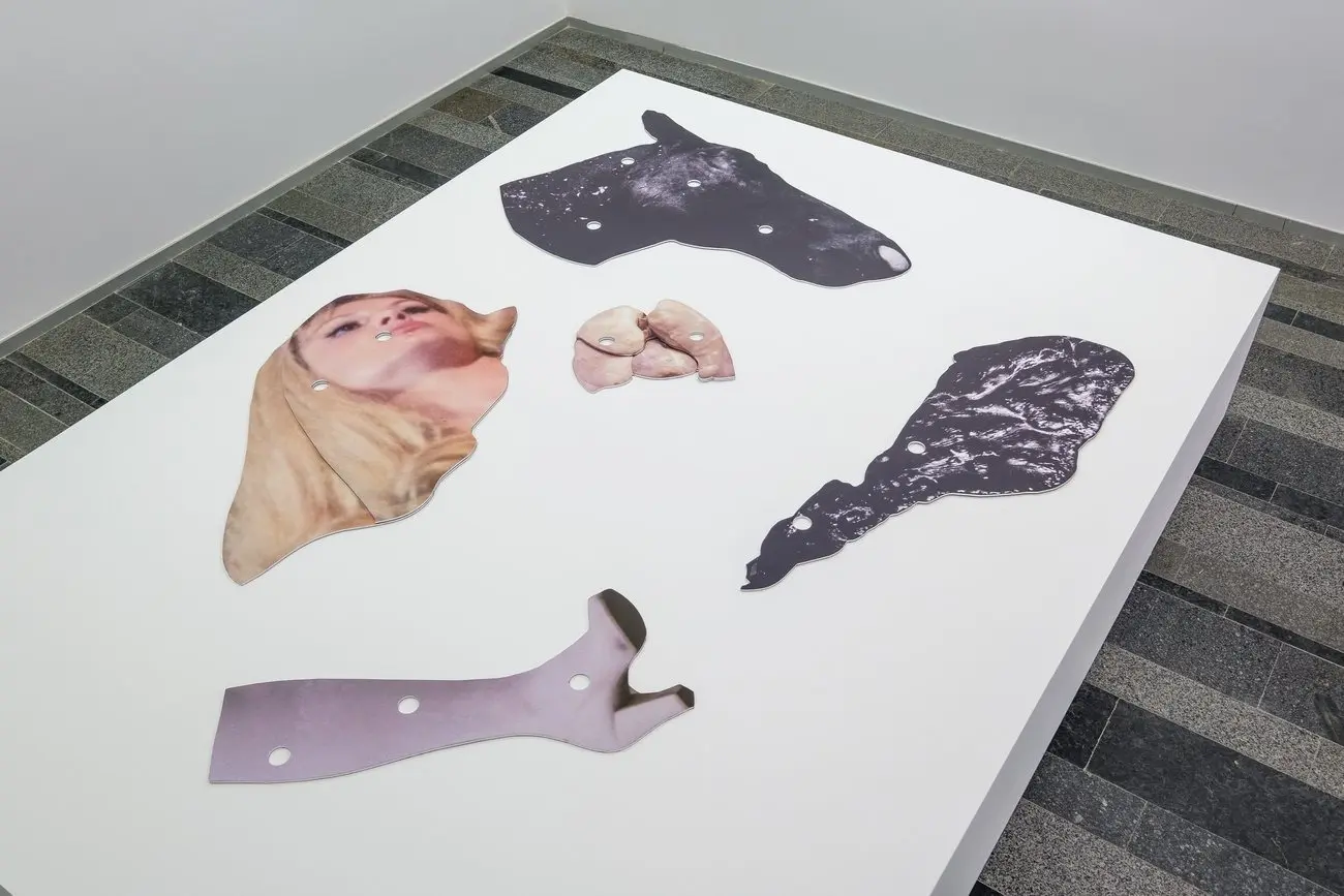 Дві жінки, 2021 Інсталяція з 12 колажів. Цифровий друк на ґрунтованому анодованому алюмінії, нержавіючій сталі, велюровій фользі. Створено за підтримки Nordenhake Берлін/Стокгольм/Мехіко та PinchukArtCentre