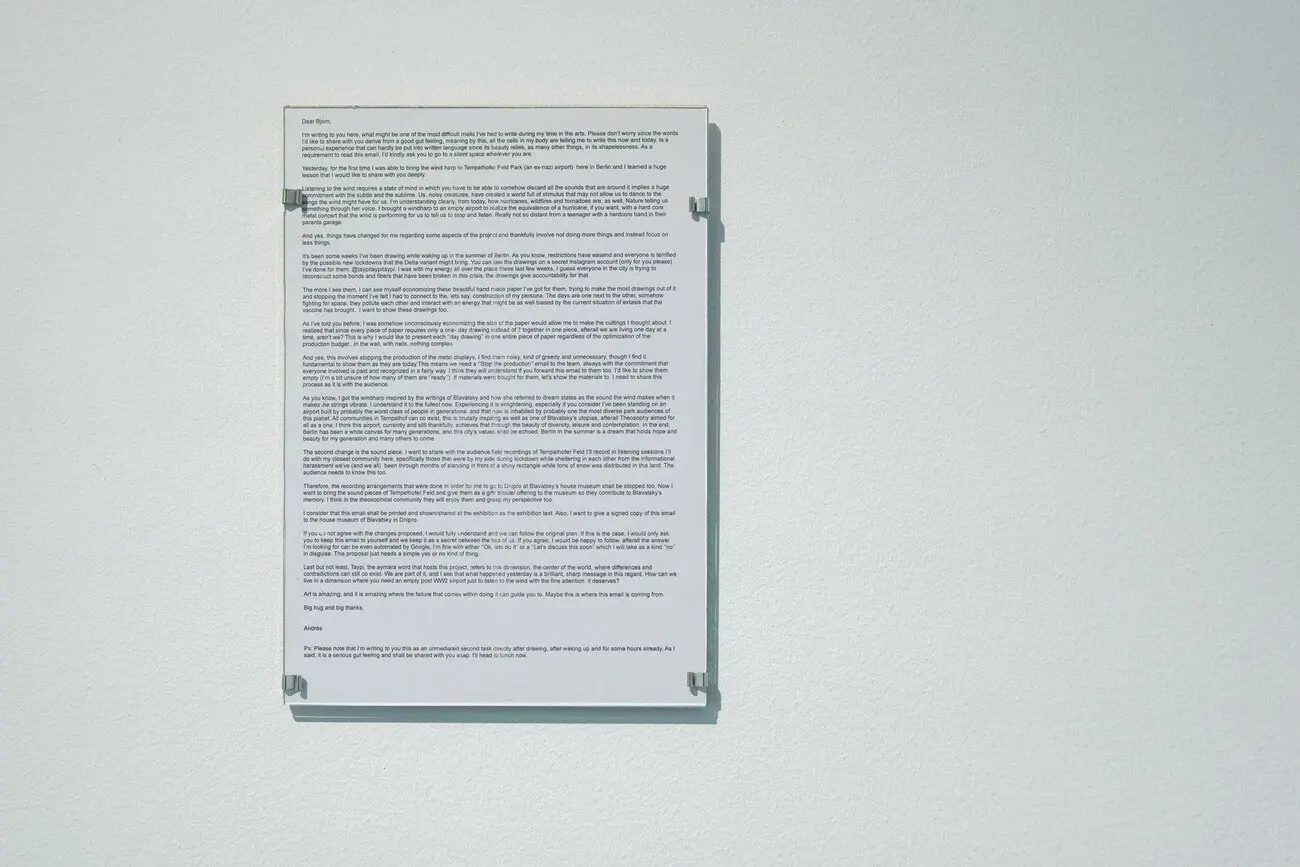 Виставка, що включає нові й недавно створені роботи, досліджує не лише світ, у якому ми живемо сьогодні, а й світ, з якого ми прийшли, а також імовірне більш інклюзивне майбутнє. Геополітика, що впливає на глобальні потоки робочої сили, капіталу та технологій, залишається однією з основних сюжетних ліній у творах мистецтва. Наслідком історичного періоду колонізації, безперервних військових конфліктів і виснаження природних ресурсів є незагойні шрами. Тісний зв’язок зі світом природи представлено на виставці лінією спіритуалізму. Художники пропонують як нематеріальні, так і фізичні практики в якості інструменту турботи одне про одного всередині спільнот. Стосунки між людьми стають ключовим моментом у цілій низці проєктів, розкриваючи тендітну близькість і напругу квір-ідентичності.