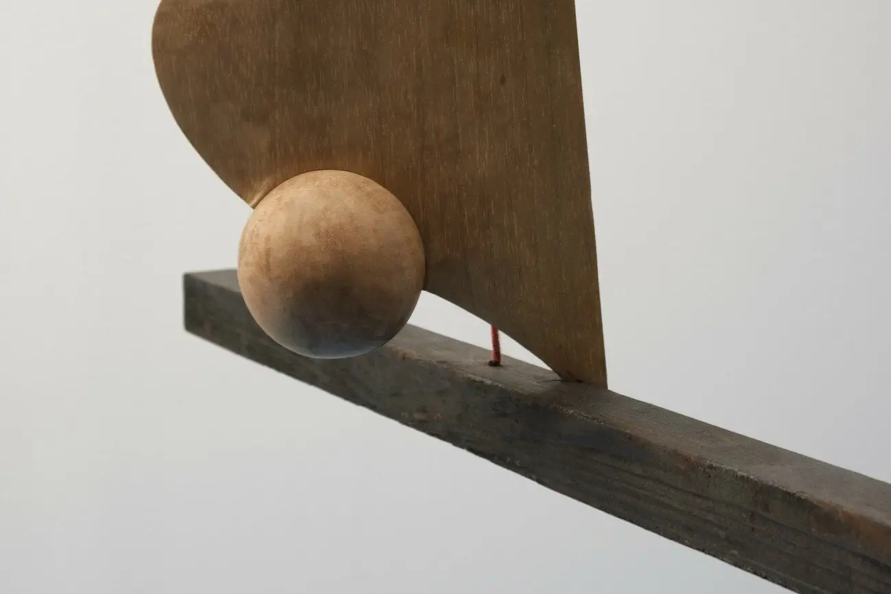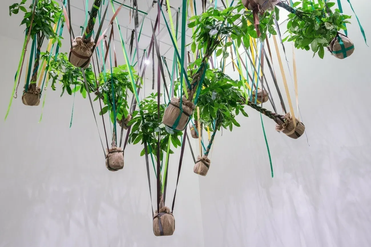 Містер Обіймайко під карнизом, 2021 Дерева пахіра, ремені