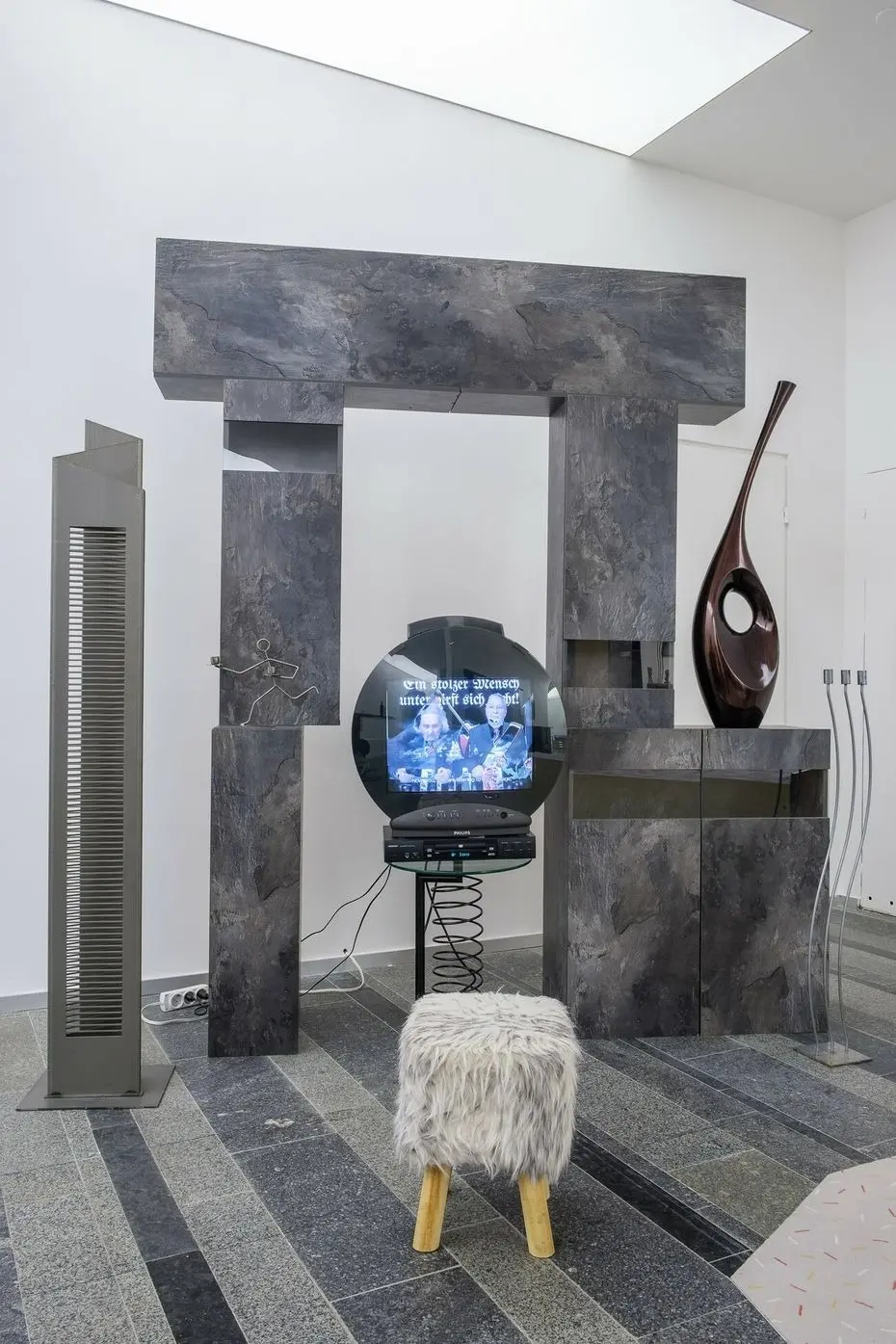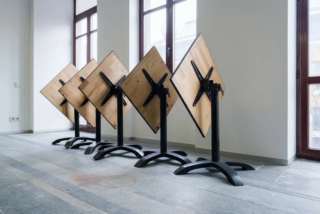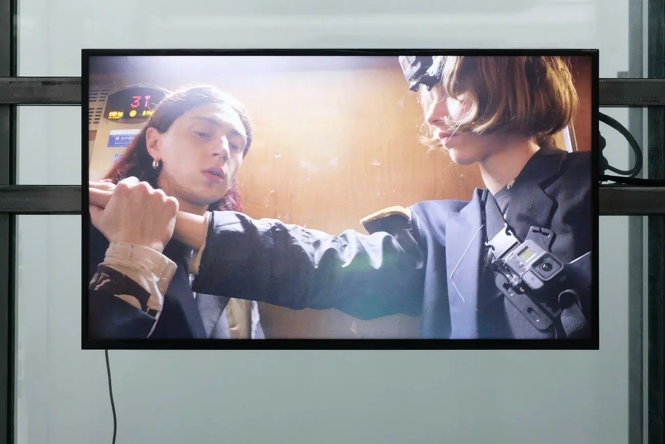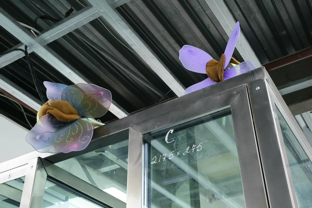 Рятувальні манекени, 2021 Знайдені вікна з офісної будівлі, багатоканальне відео, звук, дерев’яні скульптури, бронзові скульптури, жалюзі, одяг, взуття, збруя, світло. Створено за підтримки Lafayette Anticipations, Berthold Pott Gallery, Cite International des Arts та PinchukArtCentre