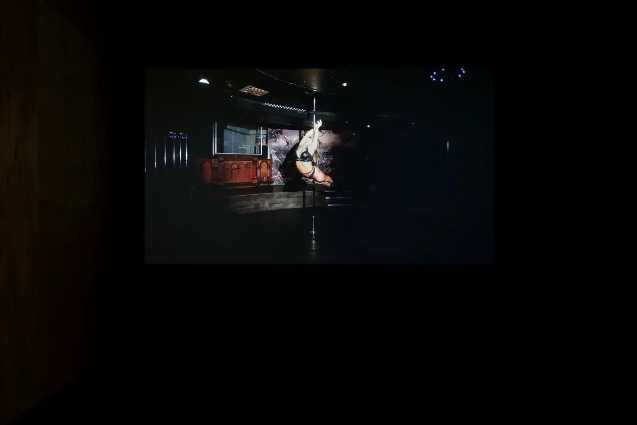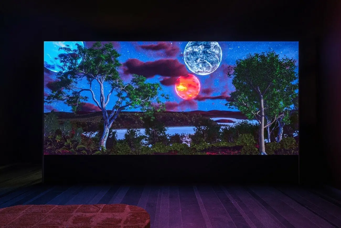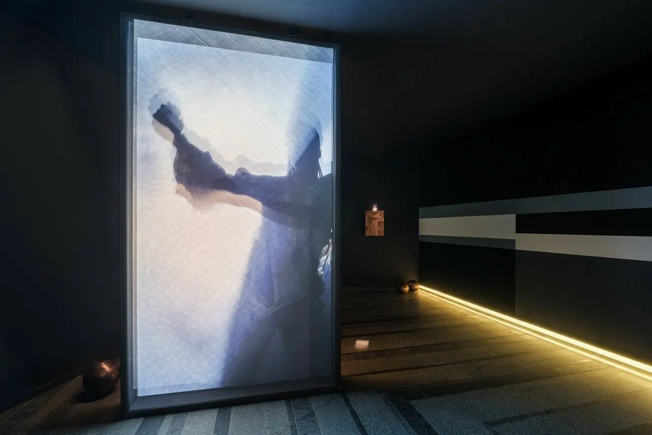 Коли тіла розчинялись в ефірі, сфери співали ноти небес, 2021 Двоканальне зациклене відео на HoloGauze екранах