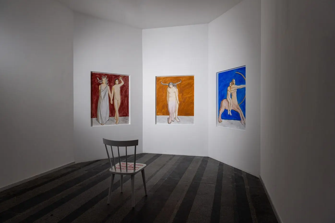 У роботі «Я неможлив_а без тебе» Катерина Лисовенко досліджує маніпулятивний потенціал поняття героїзму та культу, що його супроводжує. Це вівтарний триптих, який зображує трьох міфологічних персонажів: Медузу горгону, Мінотавра та кентавра. У сюжетах давньогрецької міфології всі вони є ворожими постатями, що зазнають насильства з боку героїв, яким відводиться головна роль. Попри це, в роботі Лисовенко істоти, що зазвичай уособлюють зло, стають основними ліричними героями: тут вони борються, захищаючи своїх близьких. Авторка пропонує поглянути на знайомі сюжети з незвичної точки зору та побачити, що ці монстри теж мають свої почуття й мотивацію.