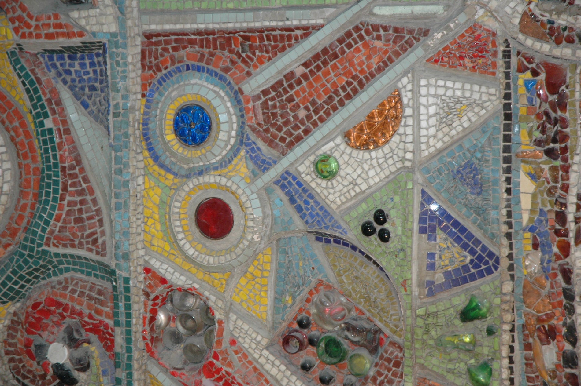 До створення цієї мозаїки Федір Тетянич підійшов експериментально. Крім кольорової смальти і поливної кераміки, він застосував «залишки» скляного виробництва: еркльоз (брили скла, вибиті з охолодженої печі), фрагменти пресованої продукції (вази, келихи тощо), елементи гути (ручки, денці тощо) та всілякий інший «склобій». Так він реалізував свою ідею використання вторинної сировини, що її він надалі активно пропагував, працюючи з відходними матеріалами.