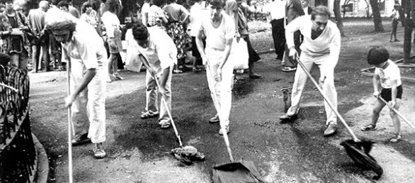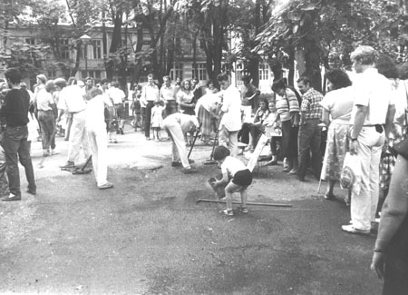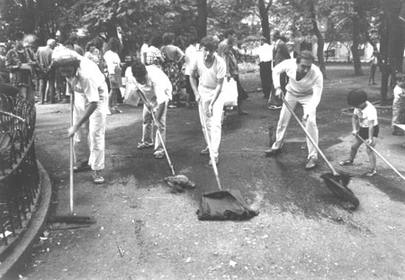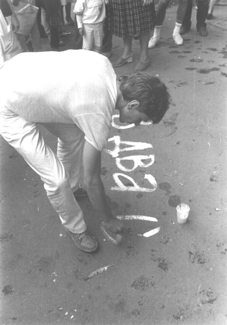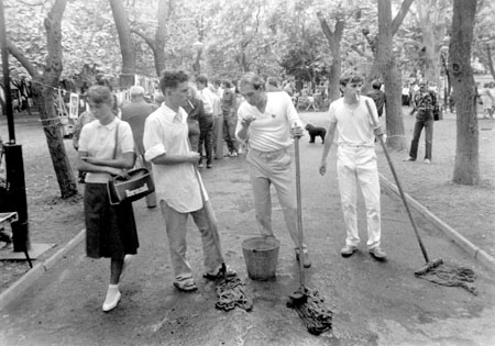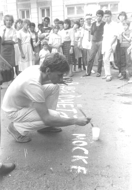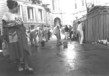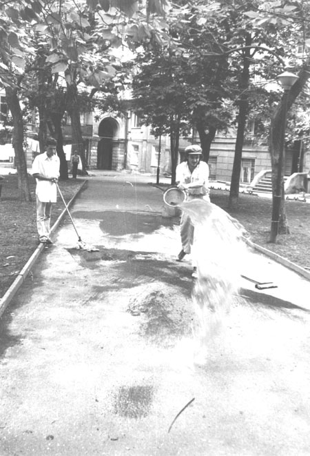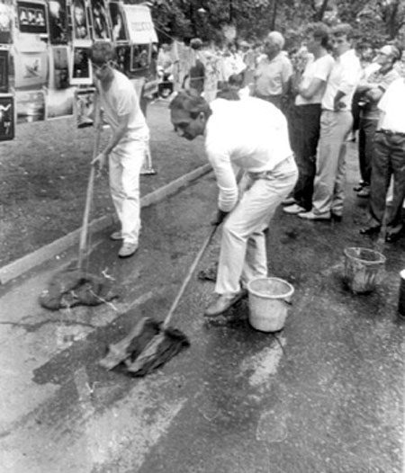 Акція проходила у сквері Пале-Рояль біля одеського оперного театру. Після дозволу на вільну торгівлю художньою продукцією в Пале-Роялі постійно проходили виставки-продажі одеських художників. Сенс акції — відмивання Пале-Роялю від «брудної», суто комерційної діяльності в мистецтві: художники в білому одязі мили швабрами асфальт у Пале-Роялі. Ця акція стала символічним протестом проти загального процесу комерціалізації мистецтва. Крім одеських концептуалістів, в акції взяв участь Костянтин Звєздочетов.