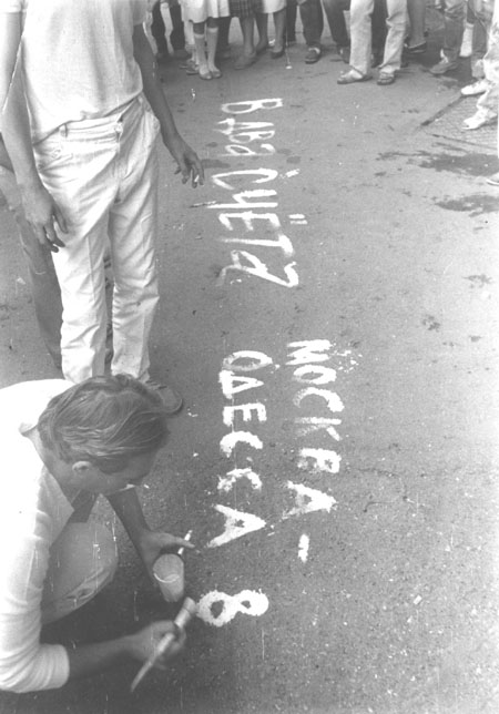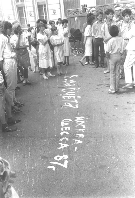 Леонід Войцехов. Одразу (рос. «В два счета»). 1987. Акція (спільно з Олександром Петреллі, Ігорем Чацкіним, Костянтином Звєздочетовим). Пале-Рояль, Одеса