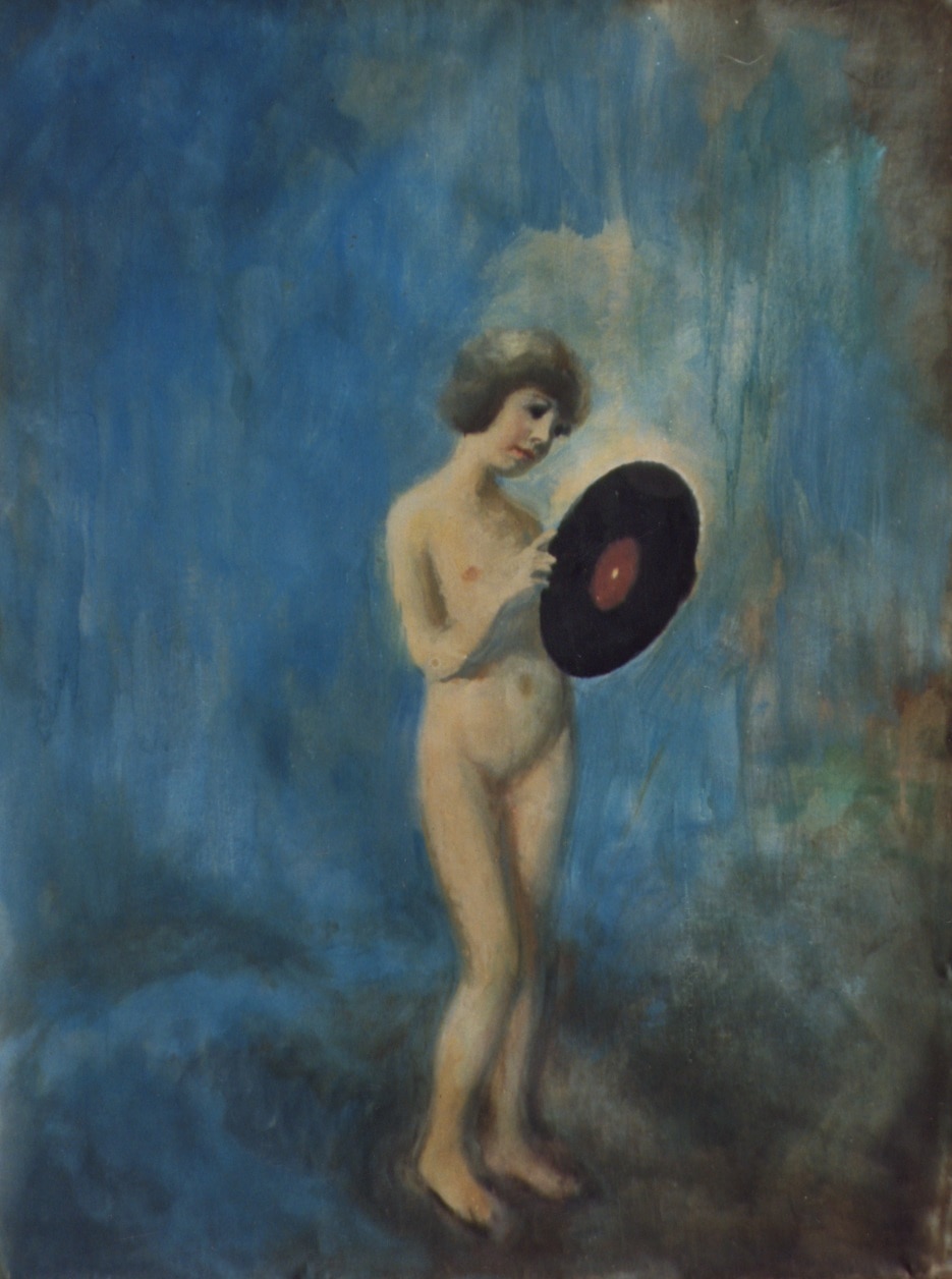 На картині в умовному інтер’єрі зображено оголену темноволосу дівчину-підлітка, яка розглядає вінілову платівку ймовірно британського гурту «Бітлз». Протисутінкові промені сонця освітлюють зображення. Один промінь світла падає на платівку й освітлює її. Позиція дівчини нагадує давньогрецький хіазм, коли вагу тіла перенесено на одну ногу.