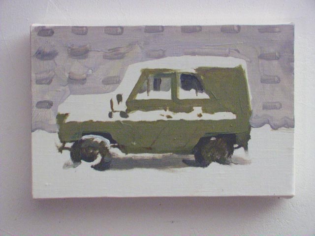 Максим Мамсіков. Серія «Проліски», або «Машинки під снігом».2003–2007. Полотно, олія. Розміри різні