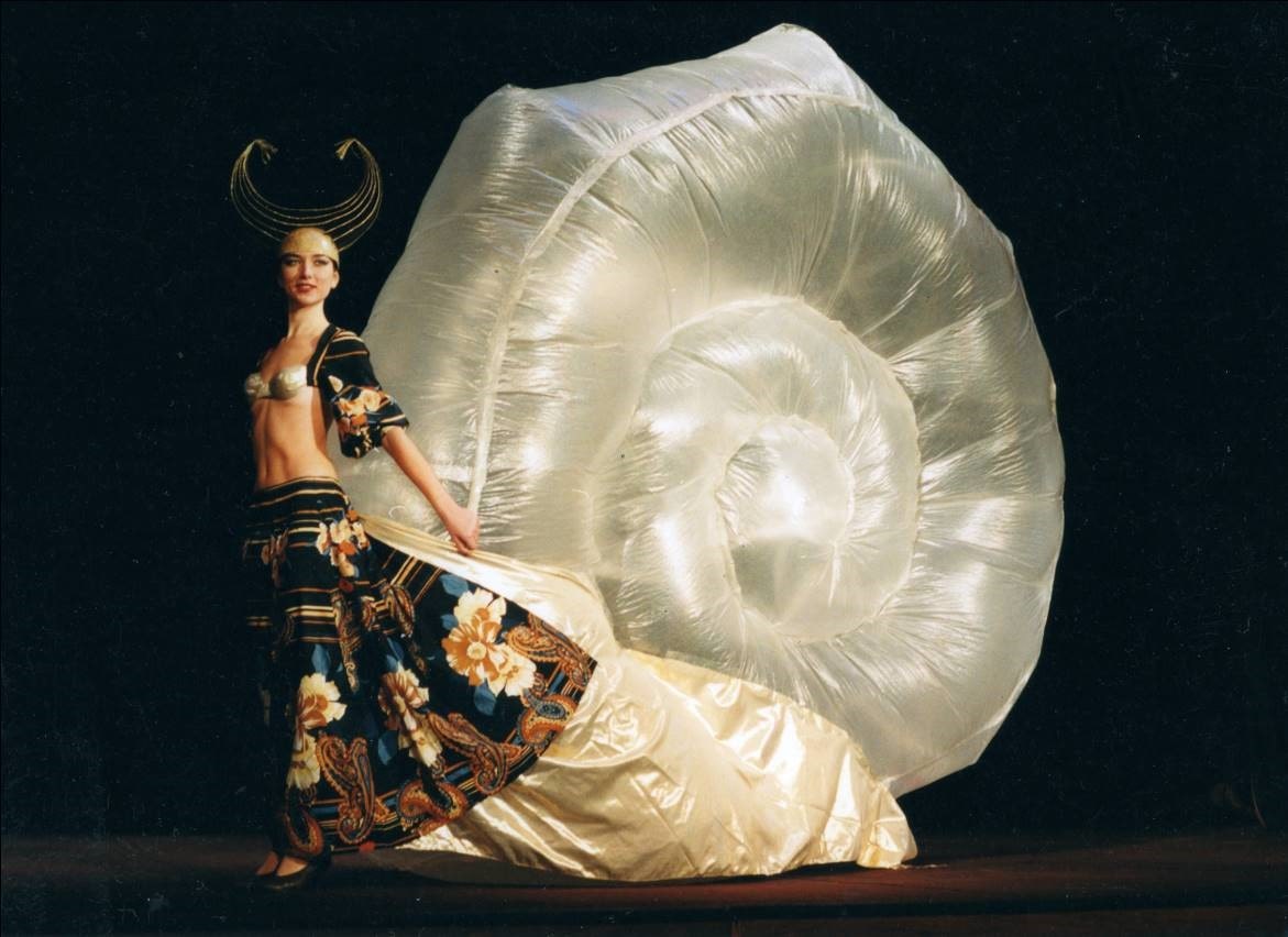 Для дефіле моделей було вбрано в ексцентричні сукні, створені за проектом Оксани Чепелик. До суконь чіпляли величезні прозорі, створені з поліетилену мушлі. На них проектувалися геометричні зображення, які завдяки нерівній поверхні поліетилену набирали округлих м’яких форм, схожих на хвилі у воді чи іншій динамічній субстанції. Пізніше ці прозорі конструкції (три великі і одинадцять маленьких) експонувалися як самостійні об’єкти.