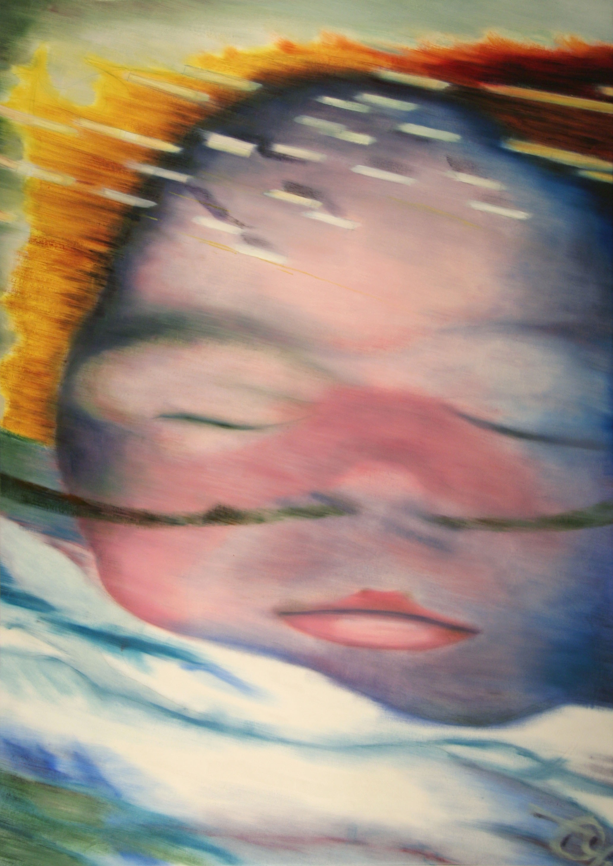 Роботи в цій живописній серії складаються з парних зображень немовлят і ляльок, яких художниця зобразила в русі у швидкій, навмисне нечіткій манері письма, і в такий спосіб підкреслила розфокусованість і стереоскопічність погляду дитини при народженні. З одного боку, у цій серії робіт художниця торкається теми народження і змін, непосидючості і постійної активності дитини. Однак, з іншого боку, парне до дитини зображення ляльки натякає на сприйняття батьками дитини як іграшки без почуттів і думок. Про це свідчить і сама назва серії, що є грою слів «немовля» та «немов лялька».