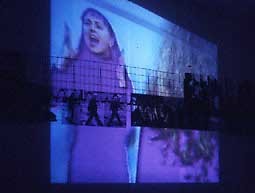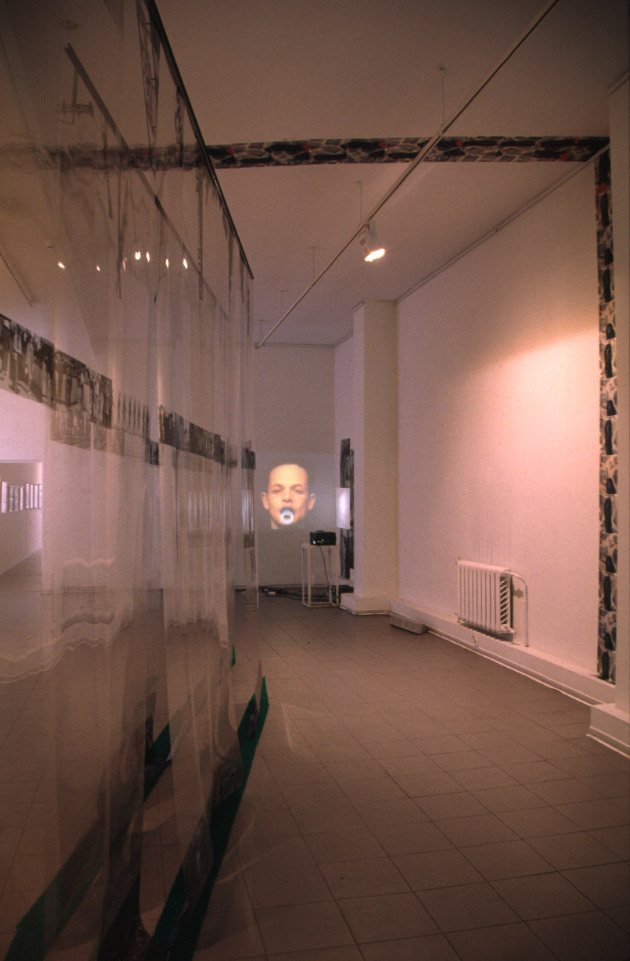 Оксана Чепелик, Уте Вайс Ледер. Далекосяжність. 1999. Інсталяція, прозора плівка, 300 × 460 см, відео, 10’