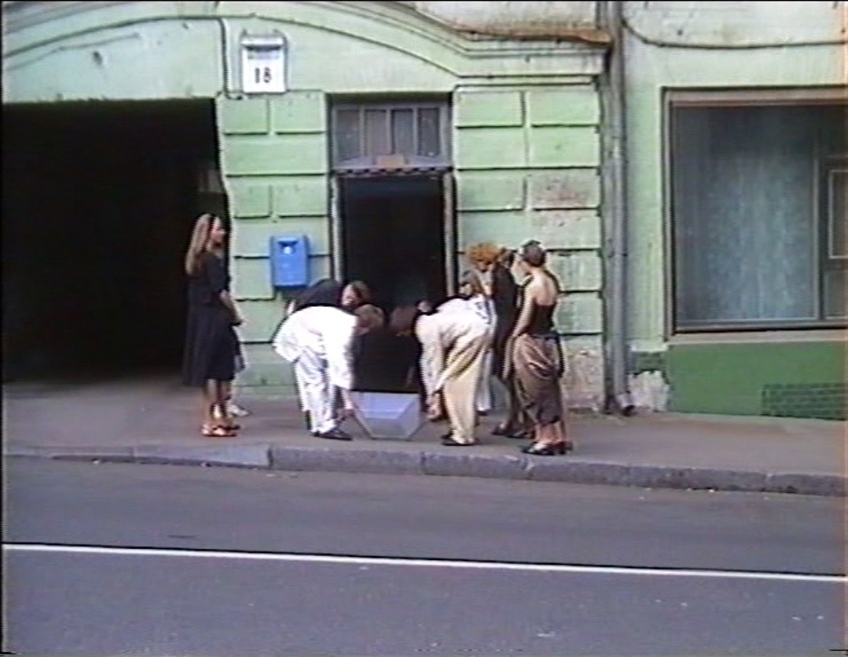 Олександр Гнилицький, Наталія Філоненко, Максим Мамсіков. Несення домовини. 1992. Документація. Відео-перформанс. 15′ 15”