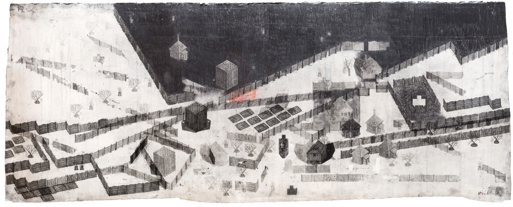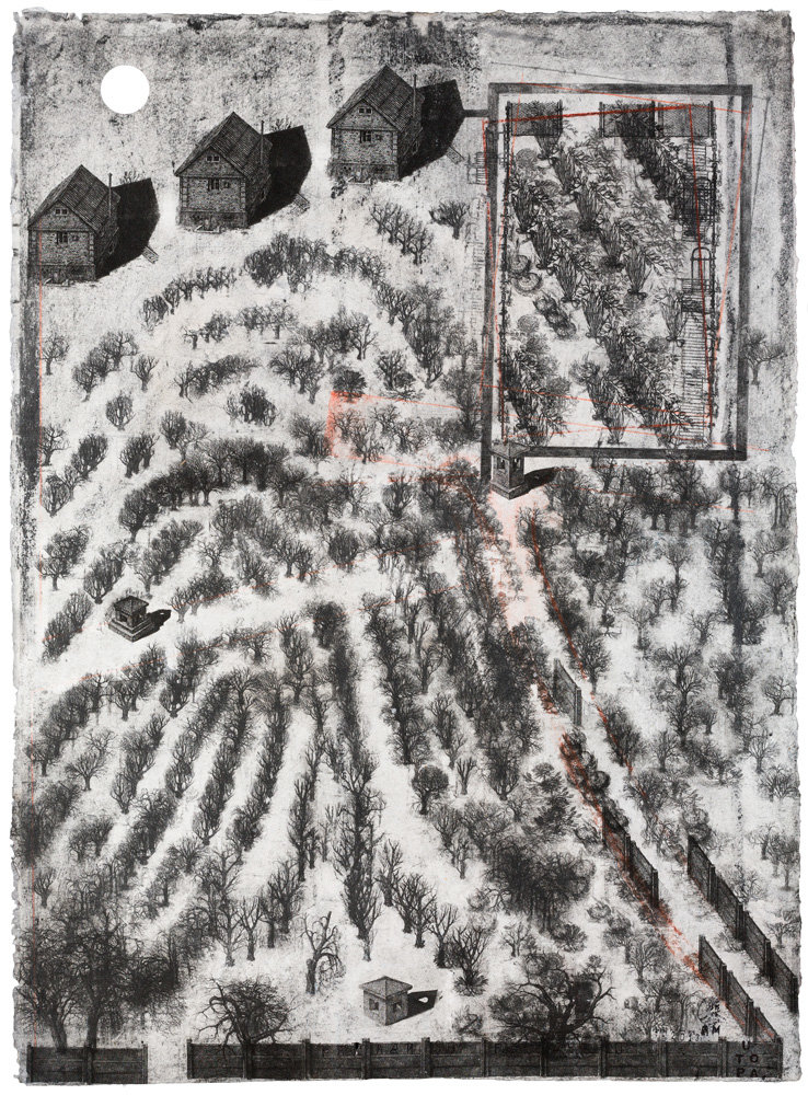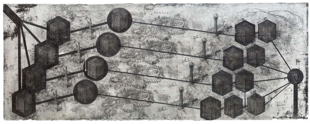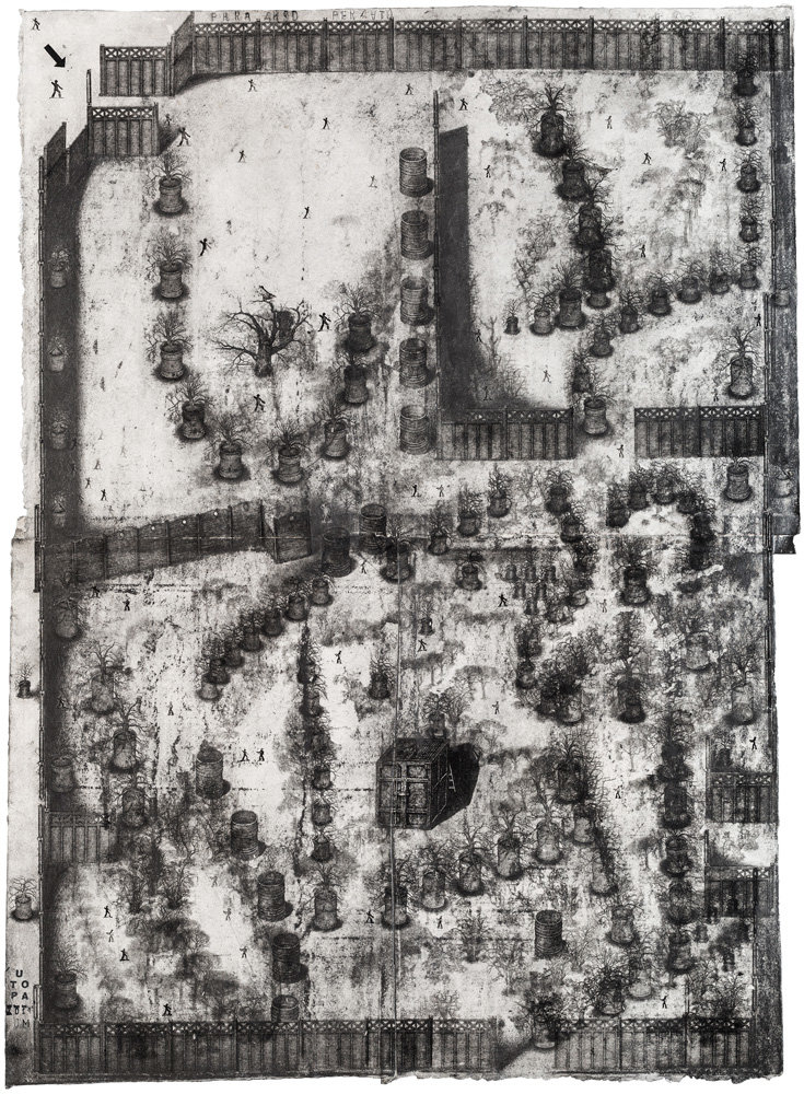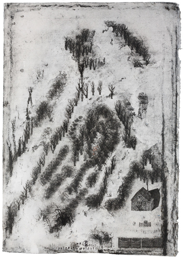 Павло Маков. Paradiso Perduto. Група творів. 2012—2014. Малюнок, багаторазове інтагліо, акрил, папір. Розміри різні: 63 × 161 см ; 71 × 52 см; 87,5 × 65 см; 286 × 341 см.