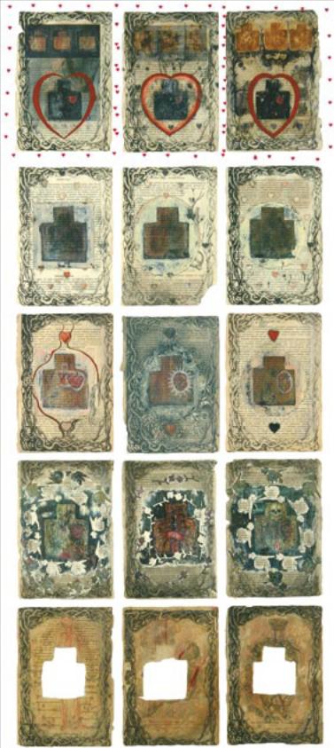 Павло Маков. Анатомія мішені. 1998–1999. Артбук у трьох частинах: частина I — Антропологія. 29 × 20 см, 1 екз.; частина II — Три сестри. 138 × 60 см; частина III — Три сестри. Книга-килимок. 138 × 60 см