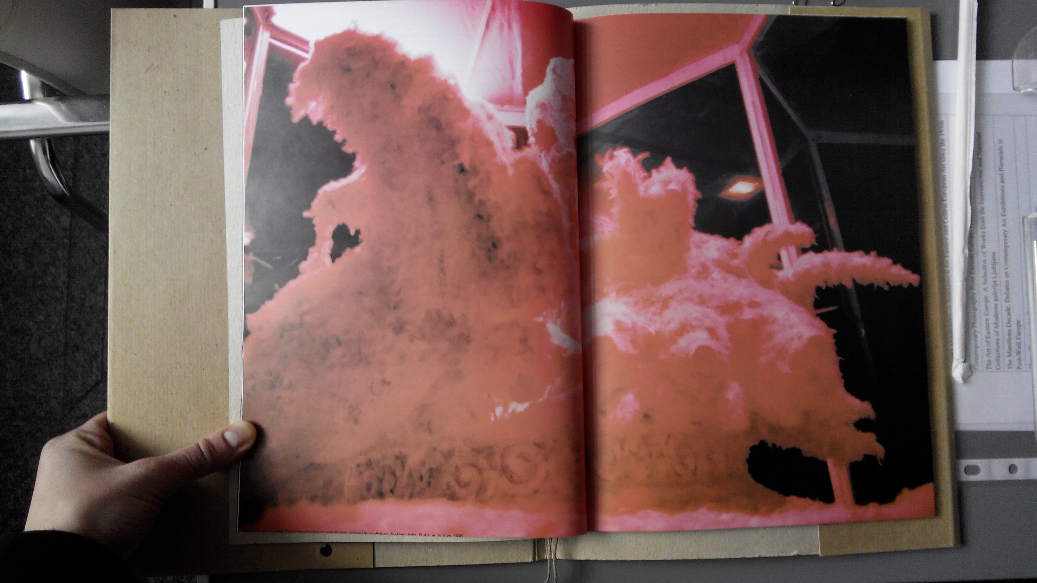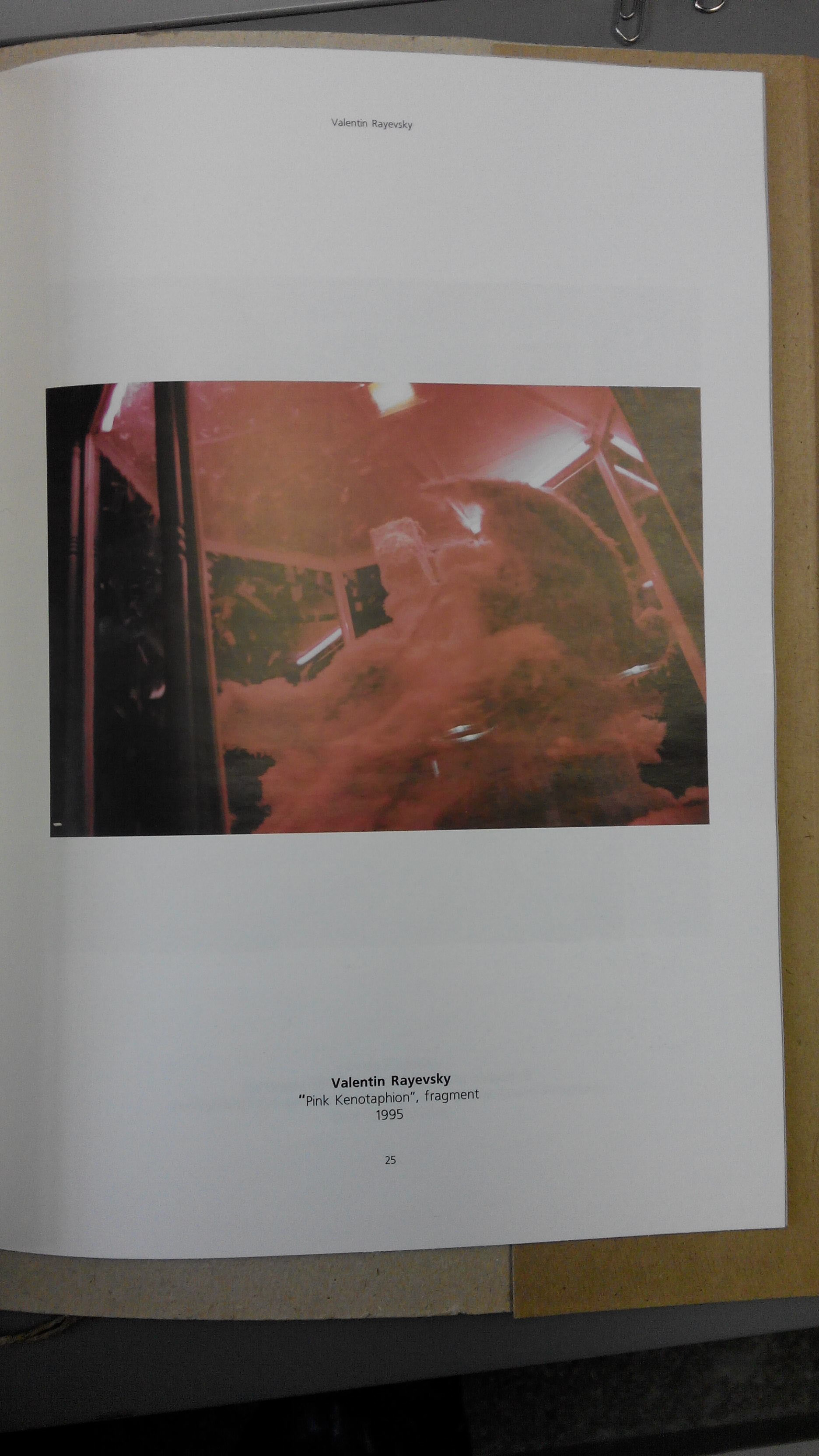 Рожевий — колір освітлення інсталяції — також часто зустрічається у живописі Раєвського (наприклад, у диптиху «Царська брама» 1989 року).