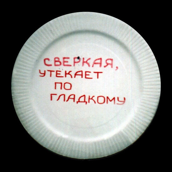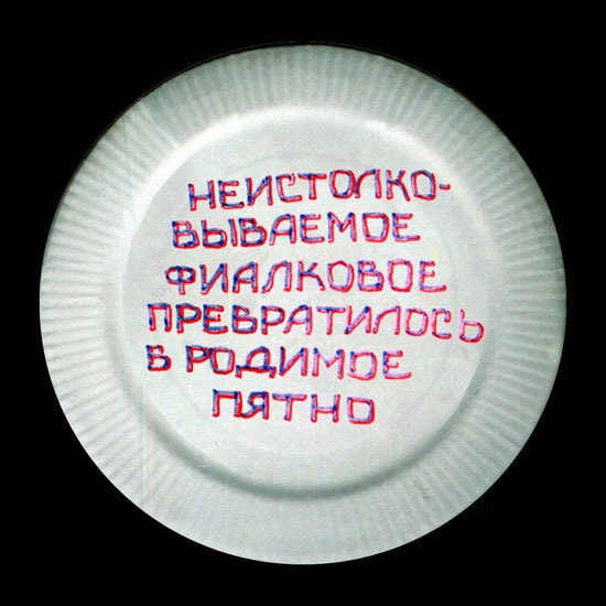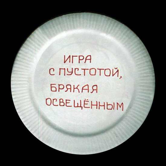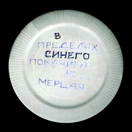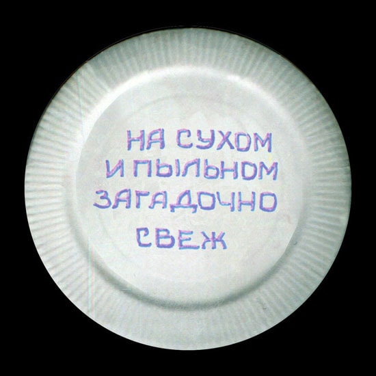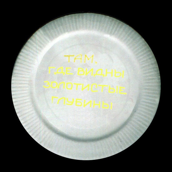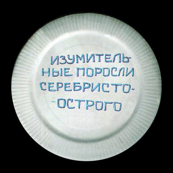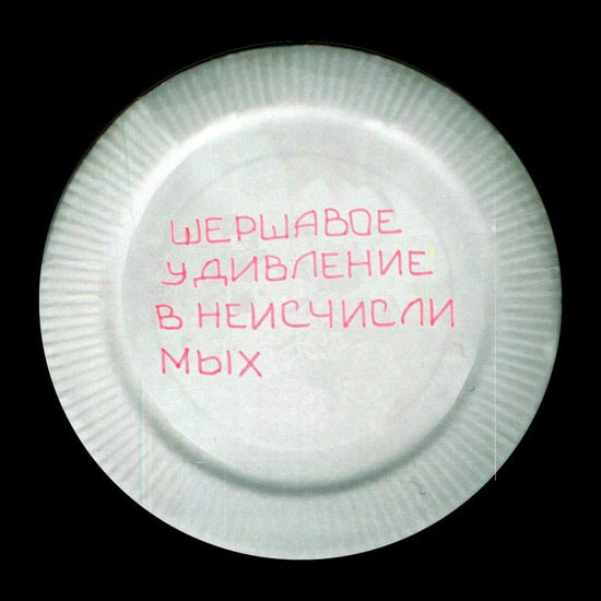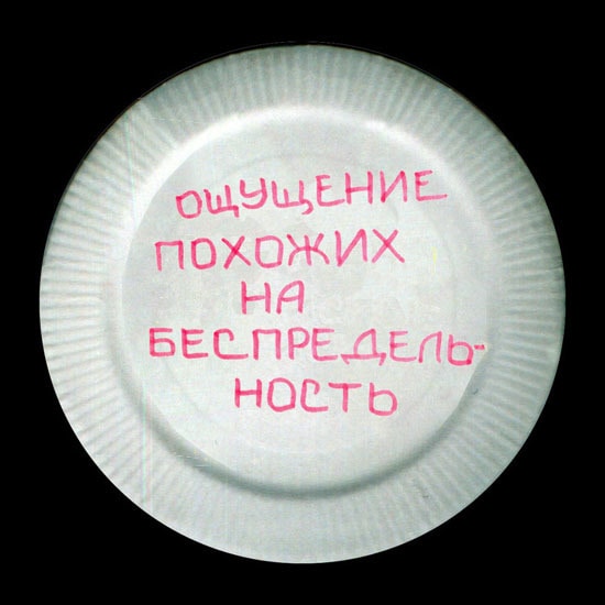 Сергій Ануфрієв. Набір для пікніка (Без назви). 1983. Інсталяція. Тарілки, фломайстер. Загальний розмір 150 × 150 см; діаметр кожної тарілки 30 см