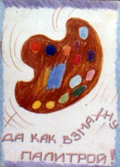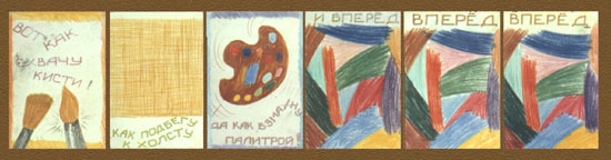 Сергій Ануфрієв. Уперед. 1983. Графіка з 6 частин. Папір, пастель, фломастер. 20 × 30 см