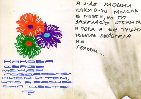Сергій Ануфрієв. Серія «Листівки». 1982. Листівки, колаж, фломайстер. Розміри різні
