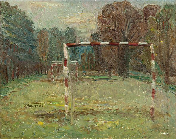 Сергій Панич. Футбольне поле. 1984. Картон, олія. 40 × 50 см