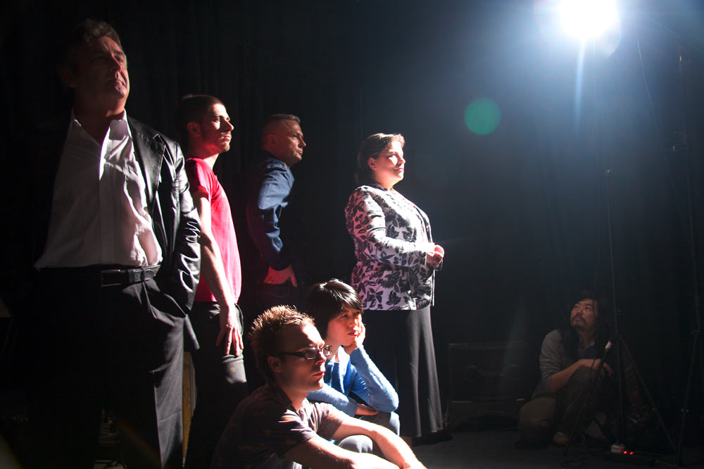 Перформанс, створений спеціально для заданого простору, відбувався у студії художників Павла Керестея та Сюзан Клаузен із залученням 6 акторів, 1 камери, 1 комп’ютера, 2 колонки, 2 посилювачів світла (2 video lights, amplifyer).