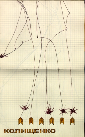 Юрій Лейдерман. Кащенко — Колищенко, із серії Зошити. 1984. Папір, змішана техніка. 23,5 × 17 см